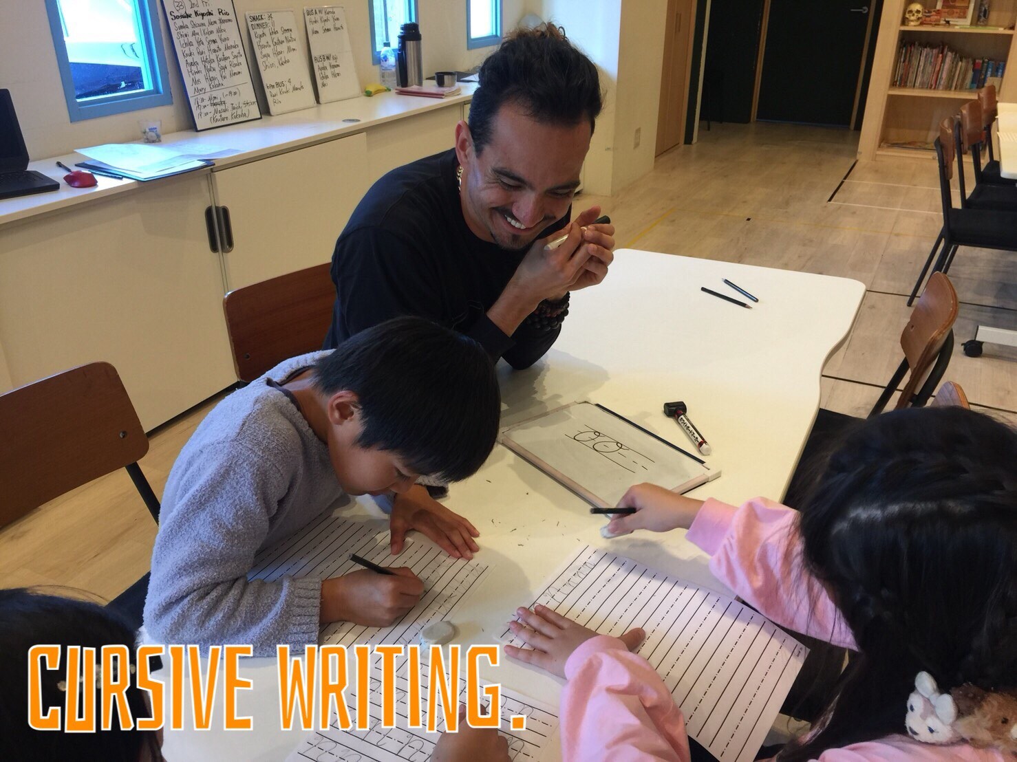 今日の”Workshop”(ワークショップ)は”Cursive writing”(筆記体の書き方)でした。
