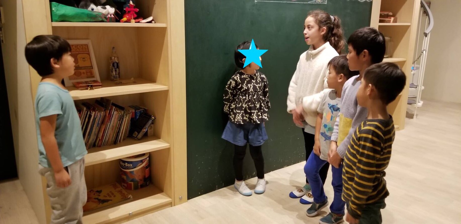 それぞれのお題から、どんな会話が生まれるかな?どんなシチュエーションがあるかな?を想像して、各チームが自分たちの会話を考えて、話し合って、練習をして、みんなにミニ劇として披露してくれています。
