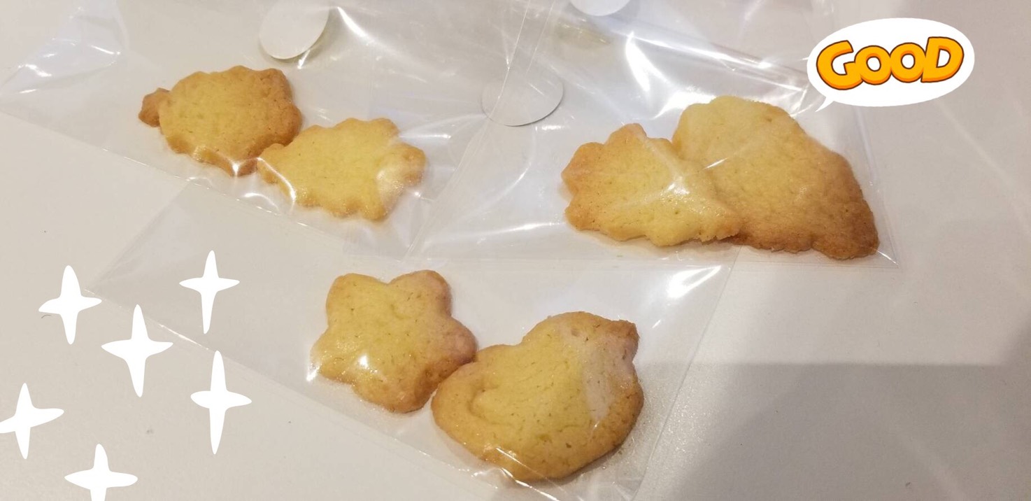 レシピを書き終わったら、テーブルを片付けて手を洗って、自分たちでクッキーを型抜きして、デコレーションもしました!