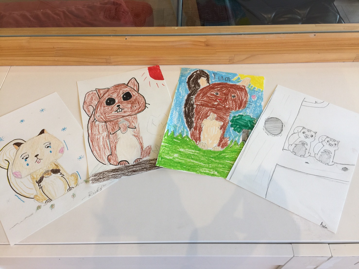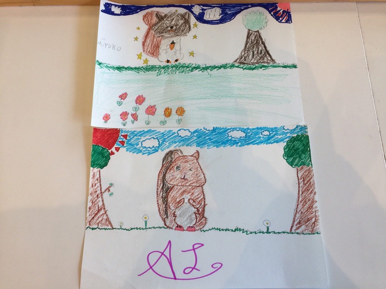 材料をもらったら今日のお題の”Squirrel”(リス)を描いてみよう!