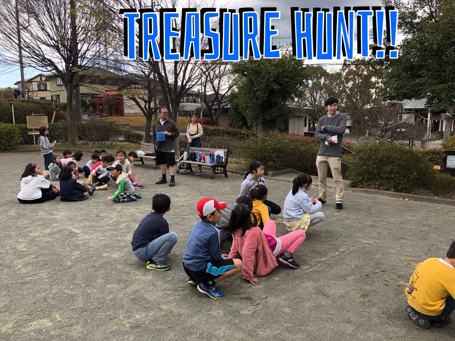 今日のスプリングスクールのイベントは“Treasure Hunt”(宝さがし)をしました。