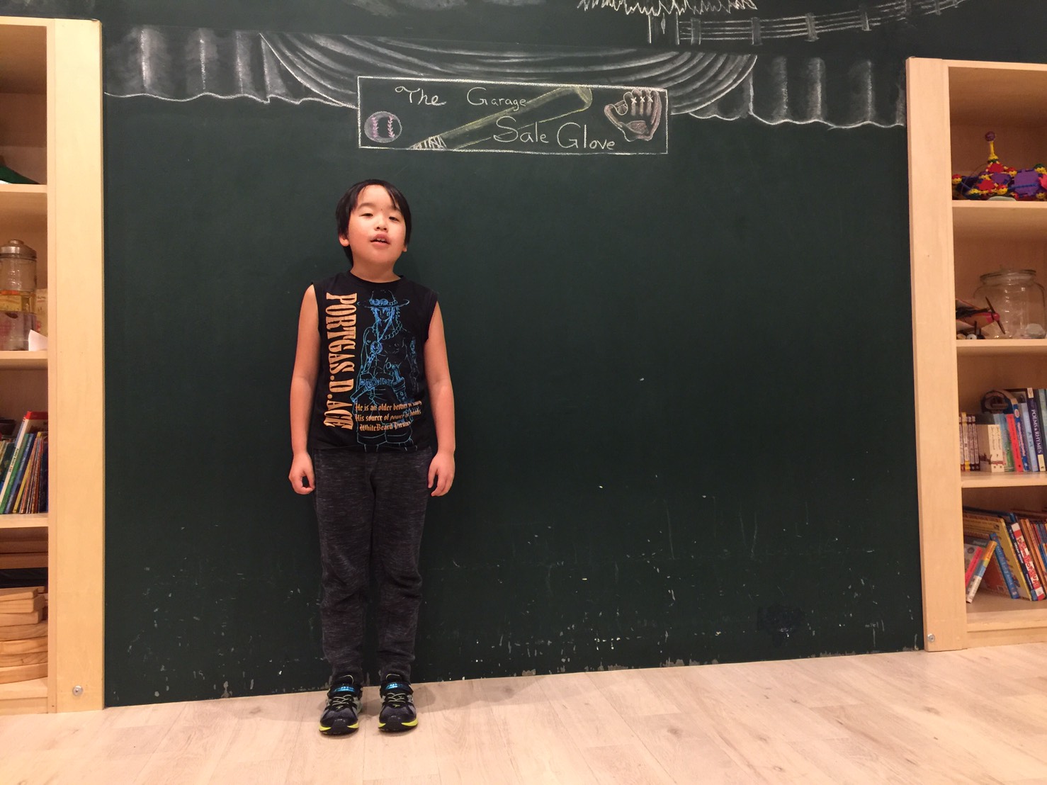 (そこには本、自転車、衣服や三輪車がありました)