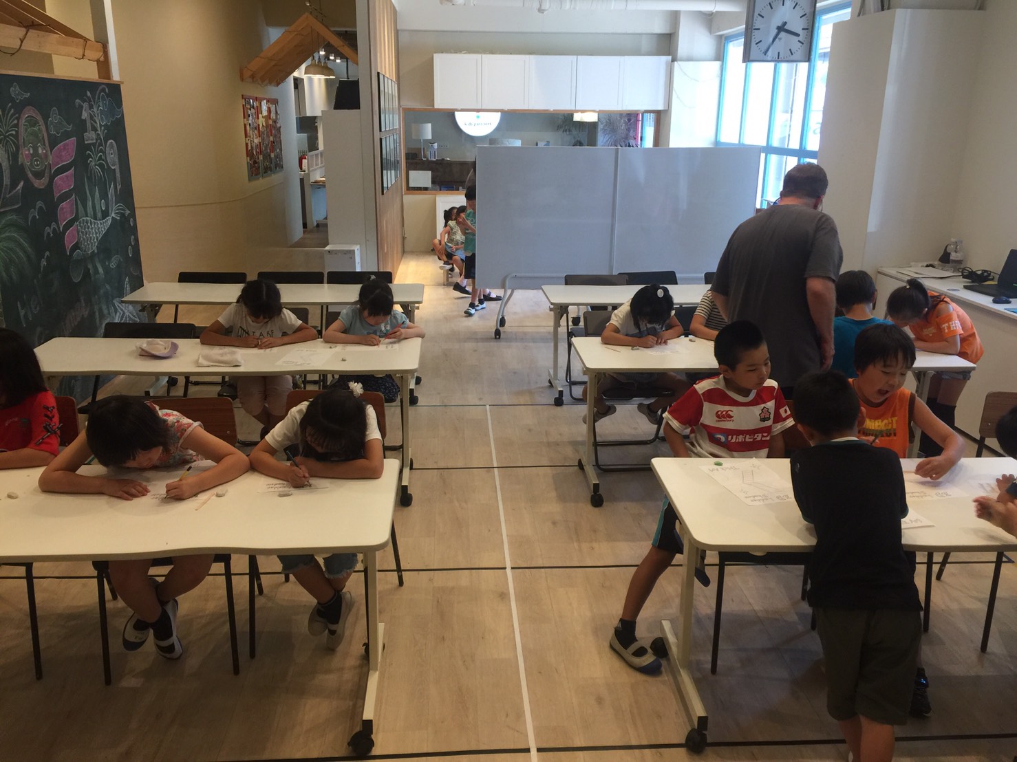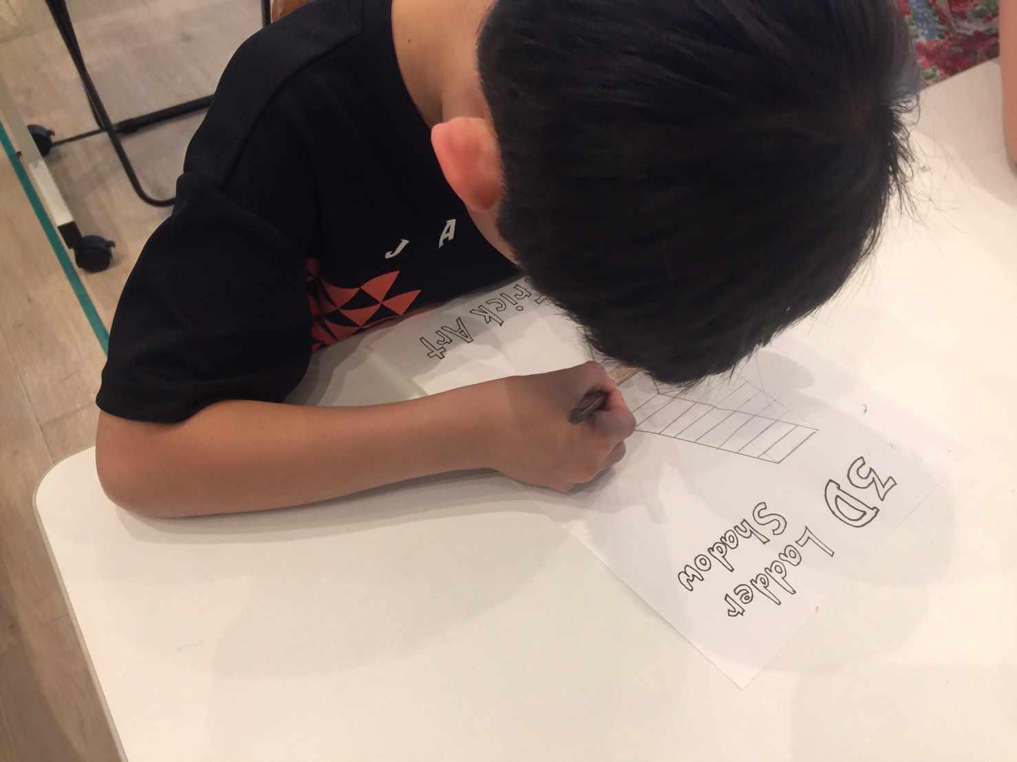 今日は明日の運動会の準備で学校が早くに終わった生徒さんたちが多く”Craft”の時間で3Dの階段!?を作りました。