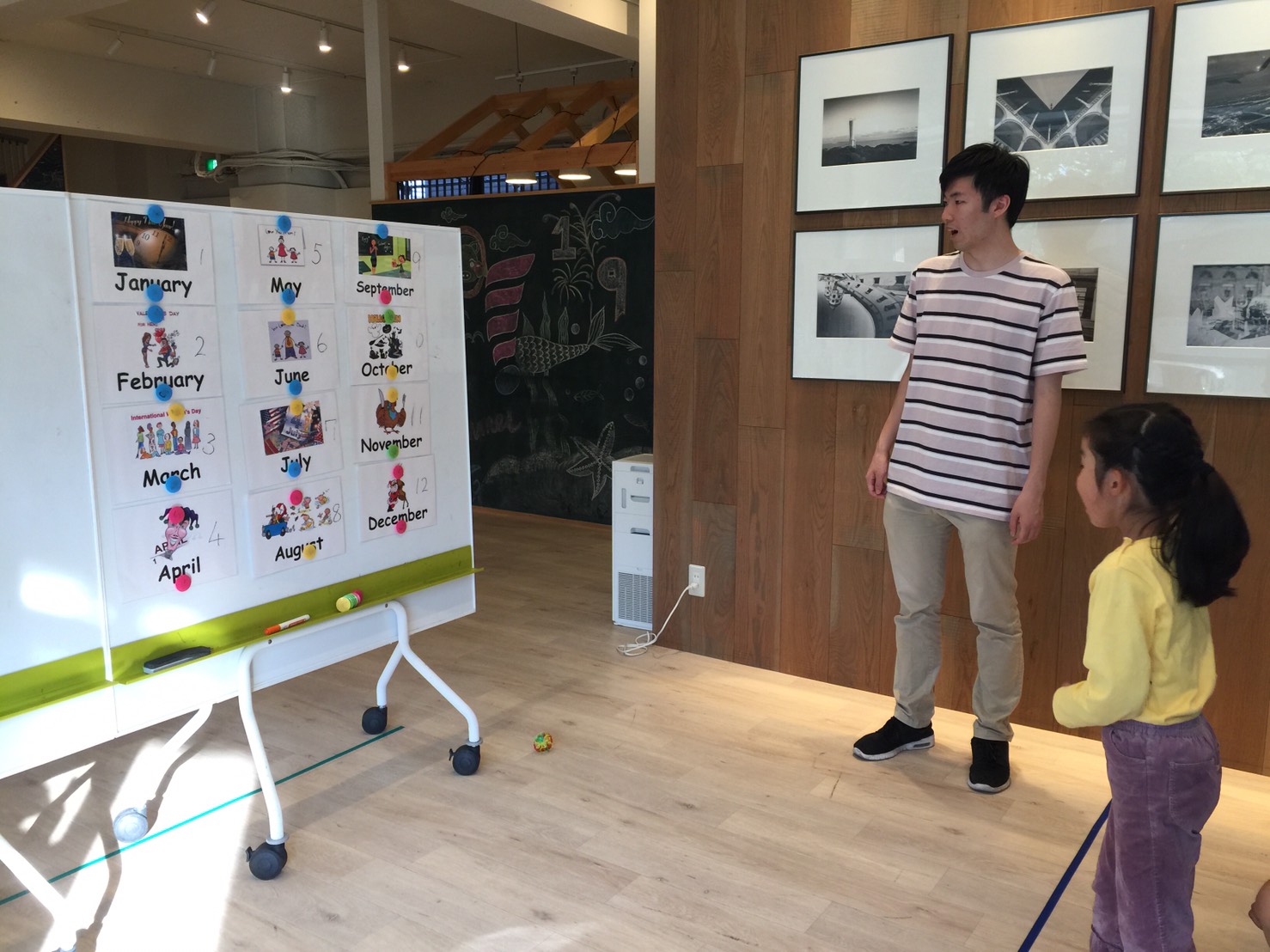 Sunny, rainy, cloudy, snowy, windy(晴れ、雨、曇り、雪、風が強い)などのお天気や、自分の好きな食べ物の英語名、talking, smiling, eating, sitting, standing(喋ってる、微笑んでる、食べてる、座ってる、立ってる)などの言葉(動詞)の練習にもなるからね。