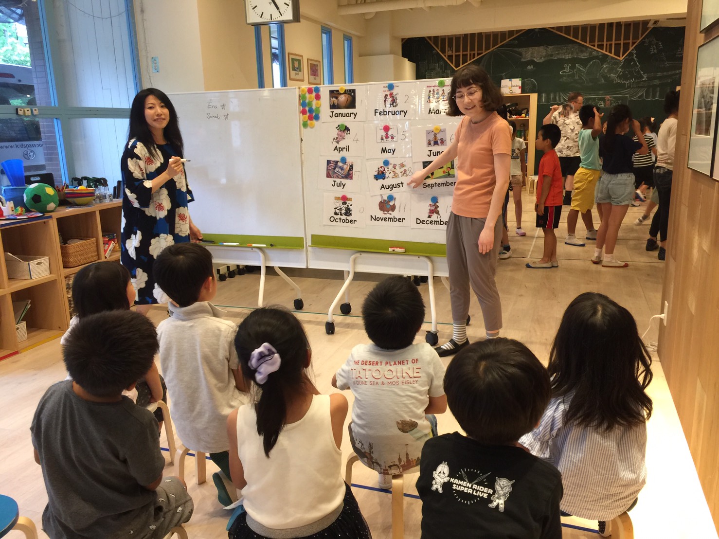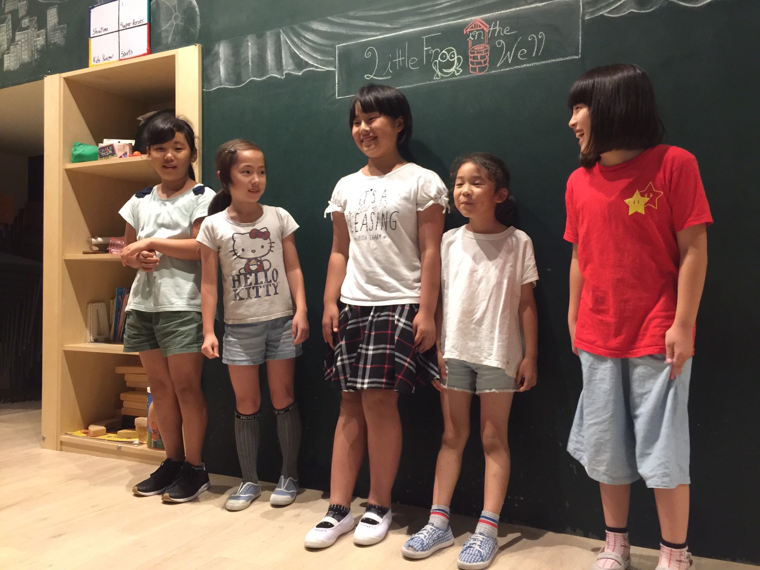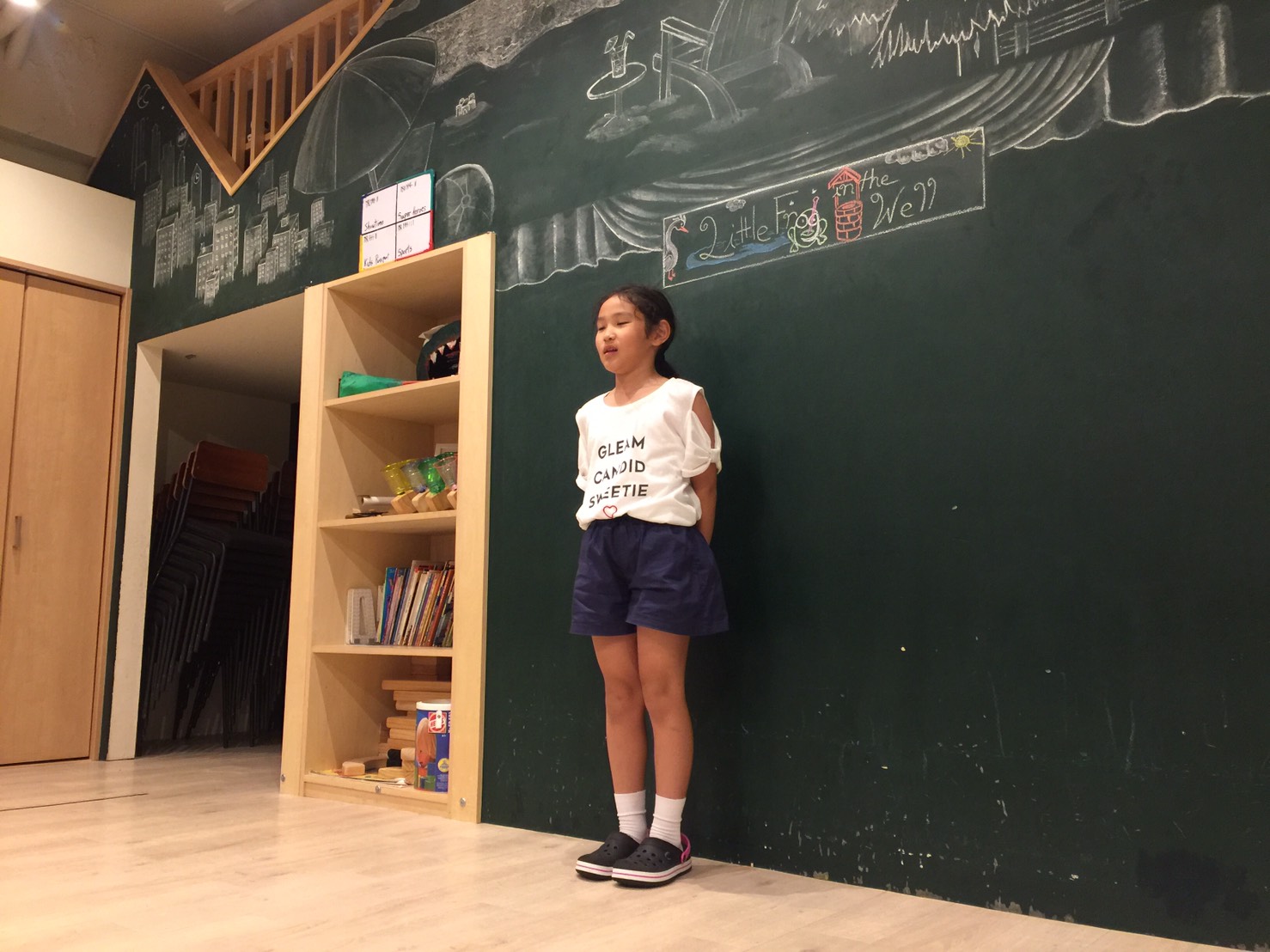 先生:“Practice the questions with the little ones.”(小さい子たちと練習してよ)