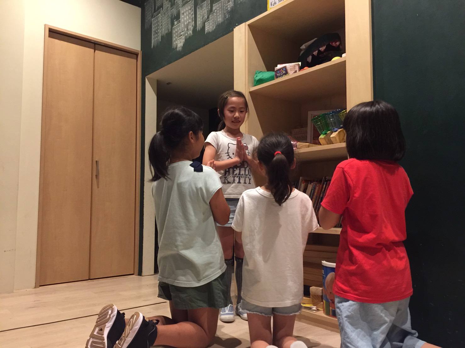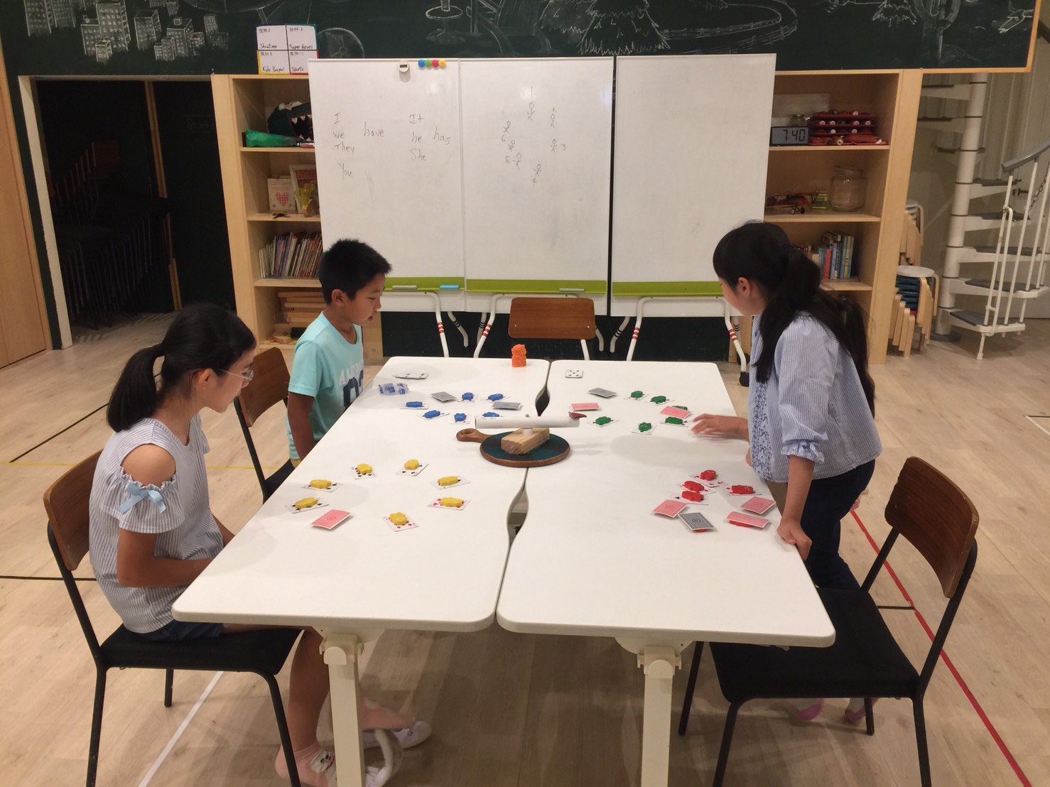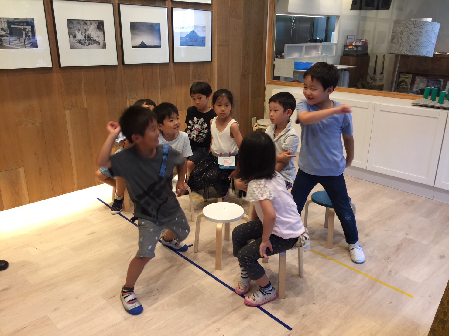 先生:“Practice the questions with the little ones.”(小さい子たちと練習してよ)