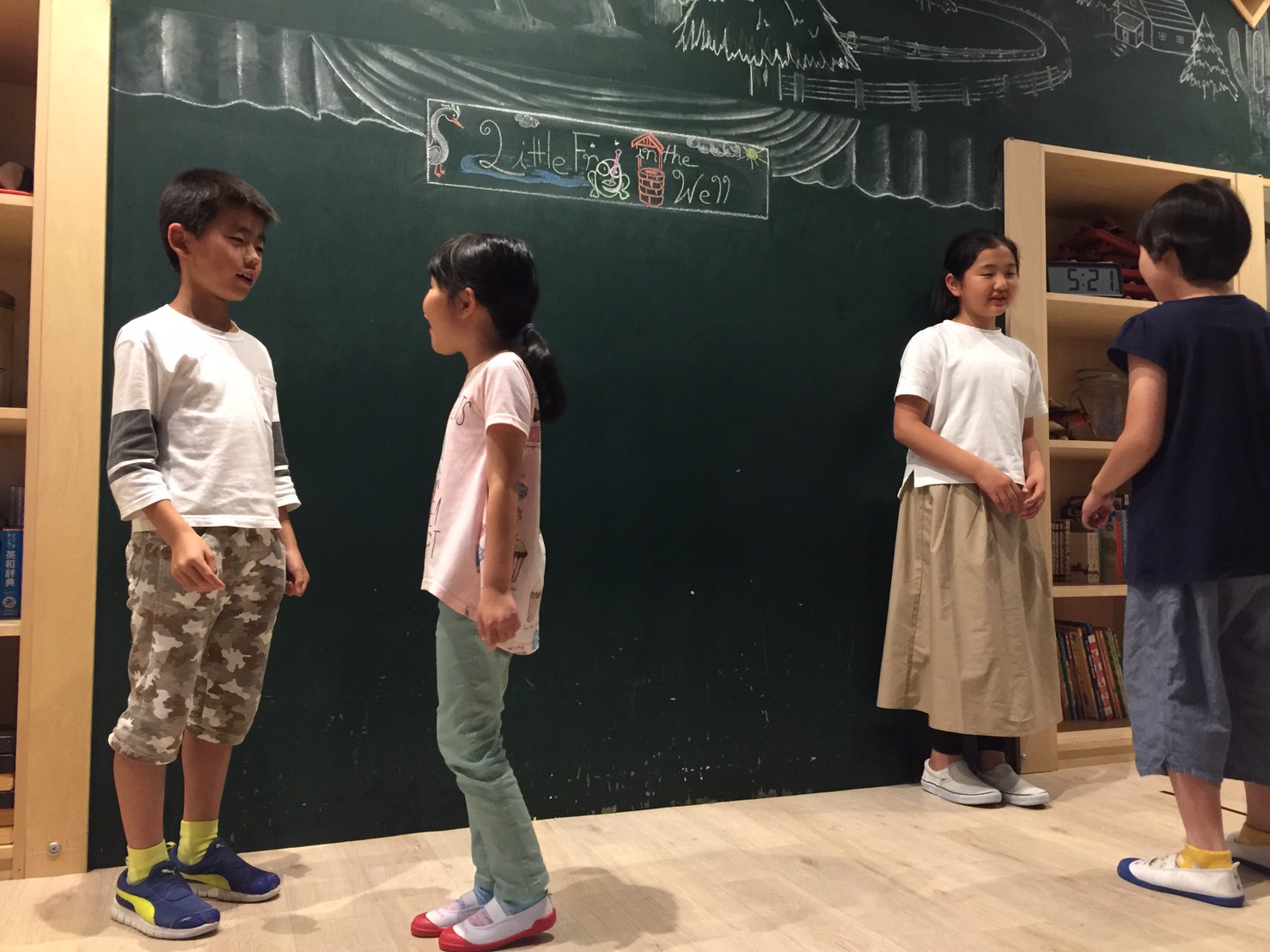 ”I like Okonomiyaki.”(私はお好み焼きが好き)、”I like chocolate. Yummy!!”(僕はチョコレートが好き。おいしい!!)と、自分たちの好きな物をまずは言って「なるほど」を引き出してくれていたり。