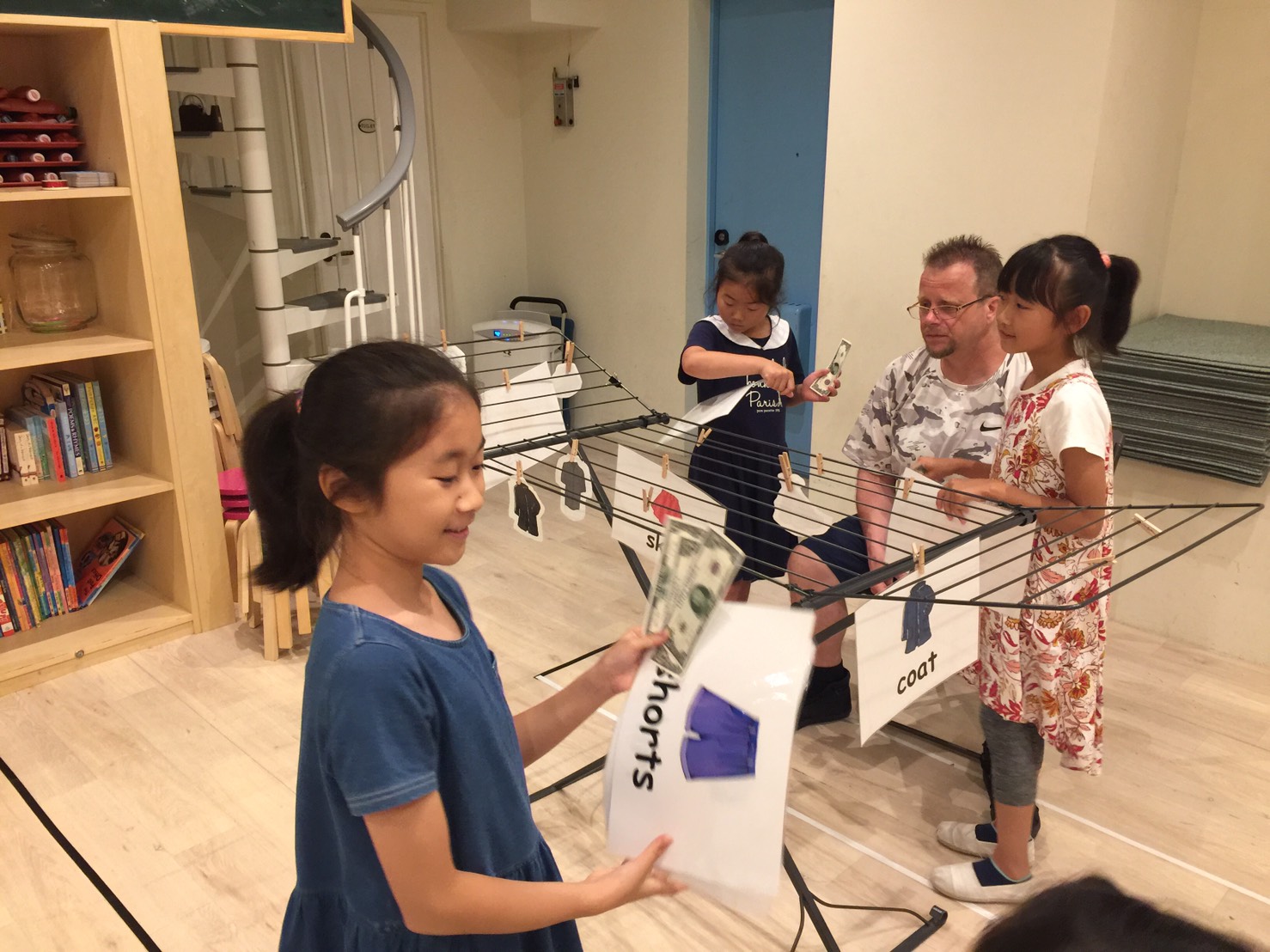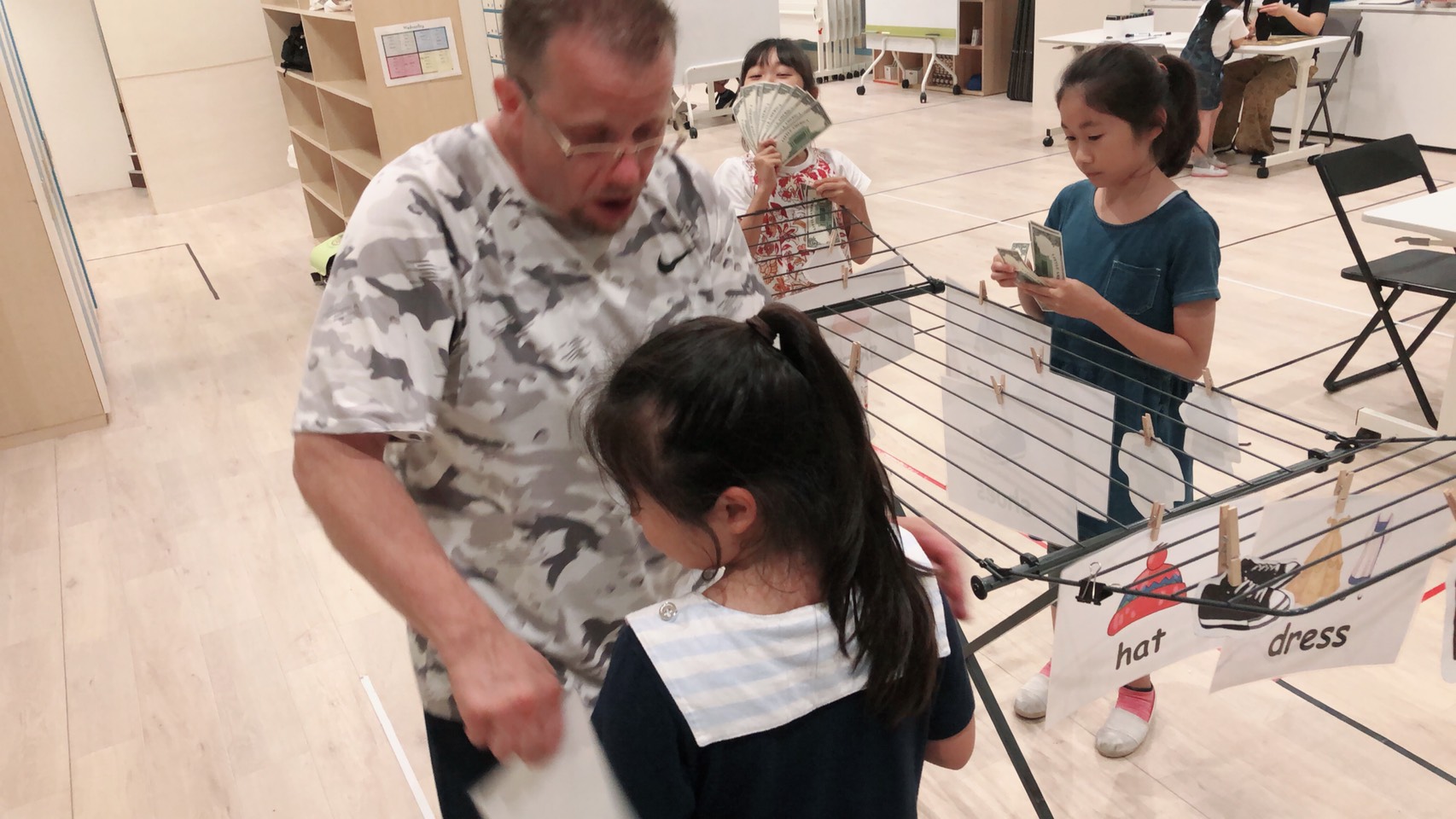 生徒さん:”Hello. How much are the blue shoes?”(ハロー。この青い靴はいくらですか?)