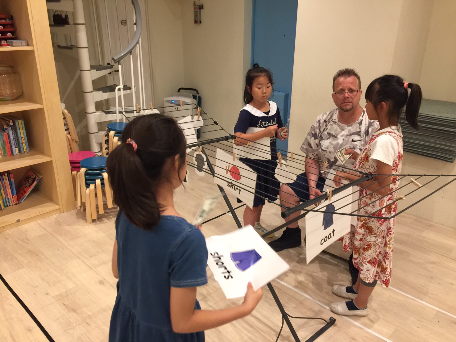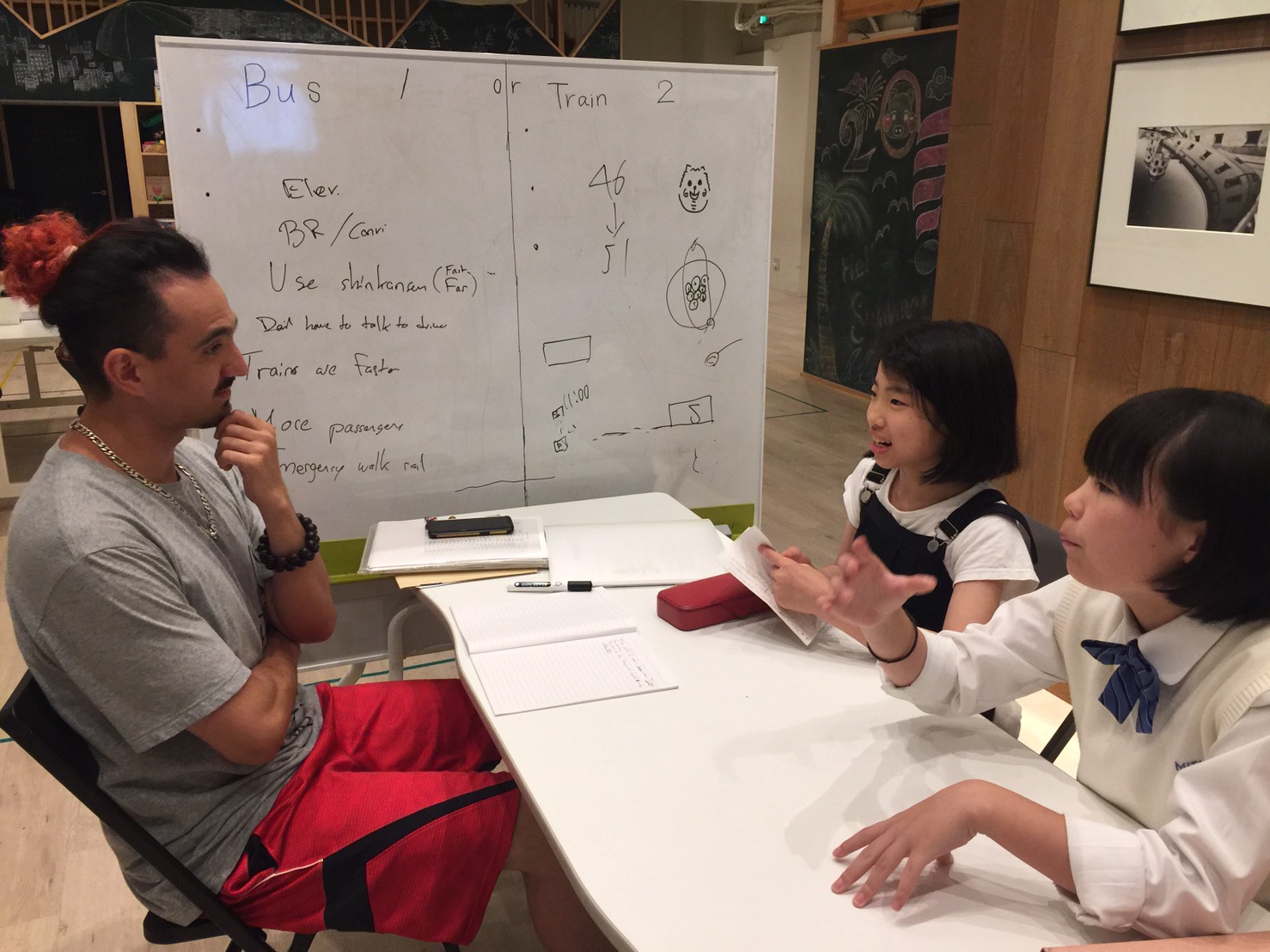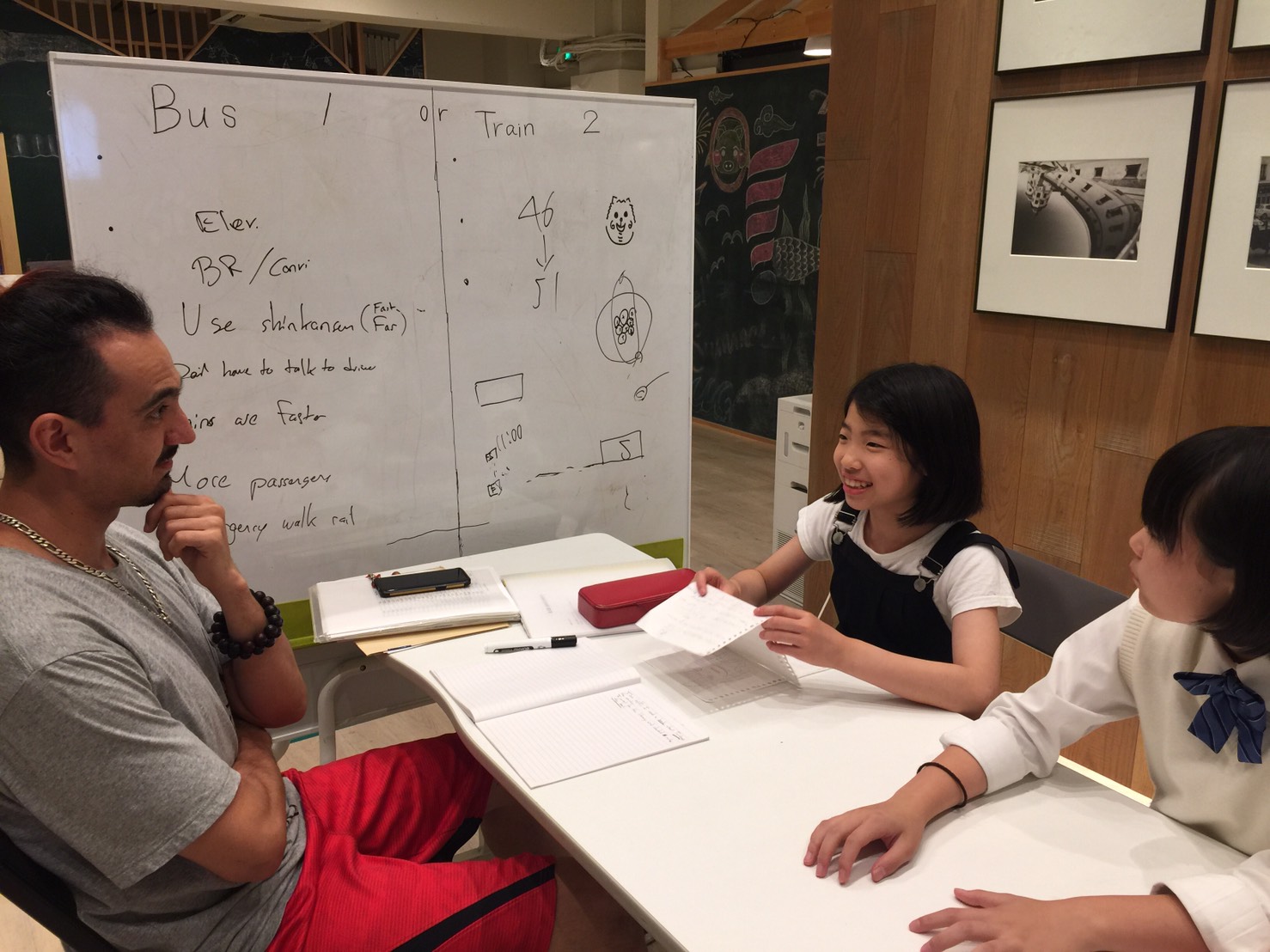 ”Intermediate Class”(中間レベルのスピーキング)は”Shopping”(ショッピング)のロールプレイを、”Upper Class”(上級レベルのスピーキング)は先生vs.生徒たちで”Bus or Train?”(バスか電車か?)で”Debate”(ディベート)をしていました。