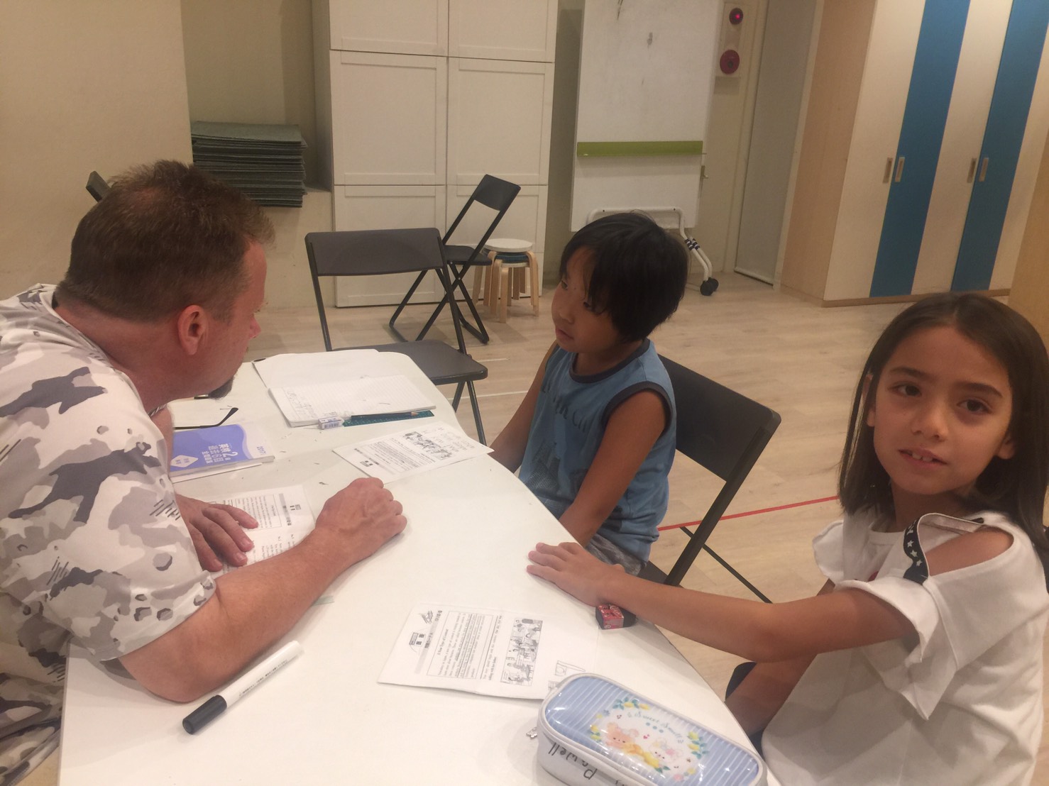 サポート側のお兄さんお姉さんも、新しい生徒さんたちに「教える」ことがまだ難しいミニ劇の時間。