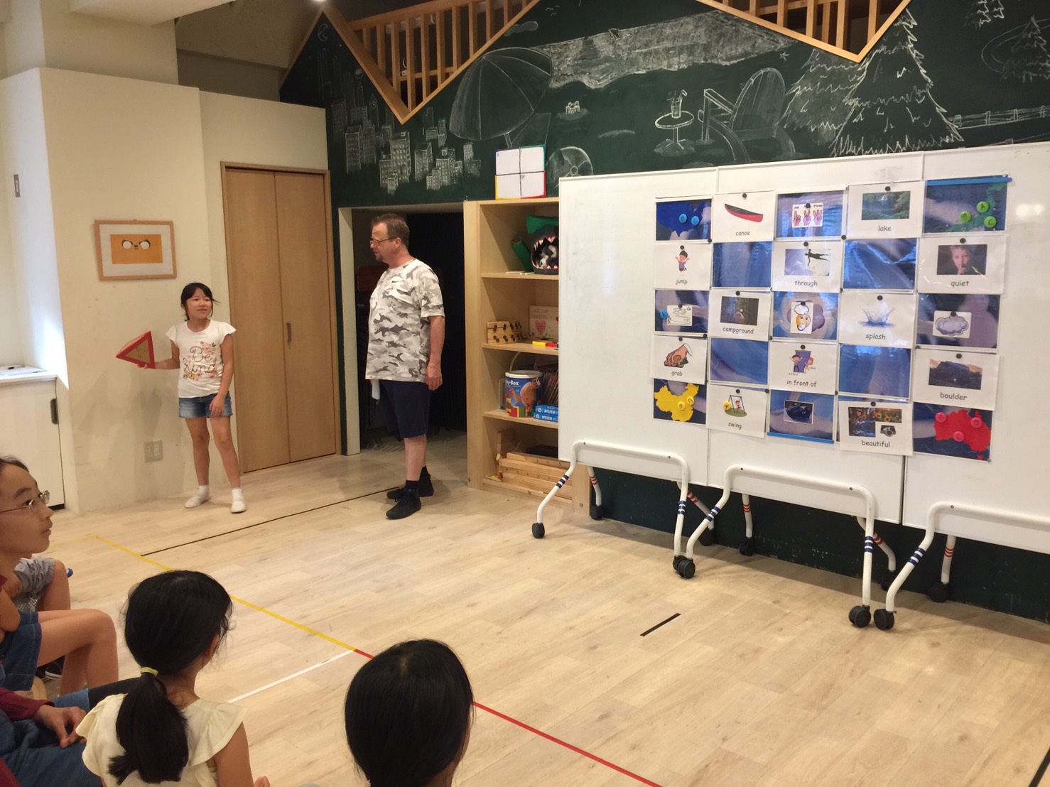 先生:”How about now? Is this jumping?”(じゃあ、これでどう?これはジャンプしてる?)※ジャンプをしながら