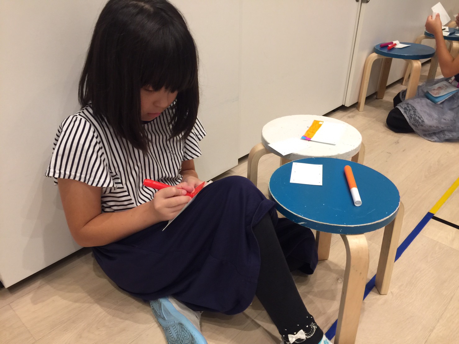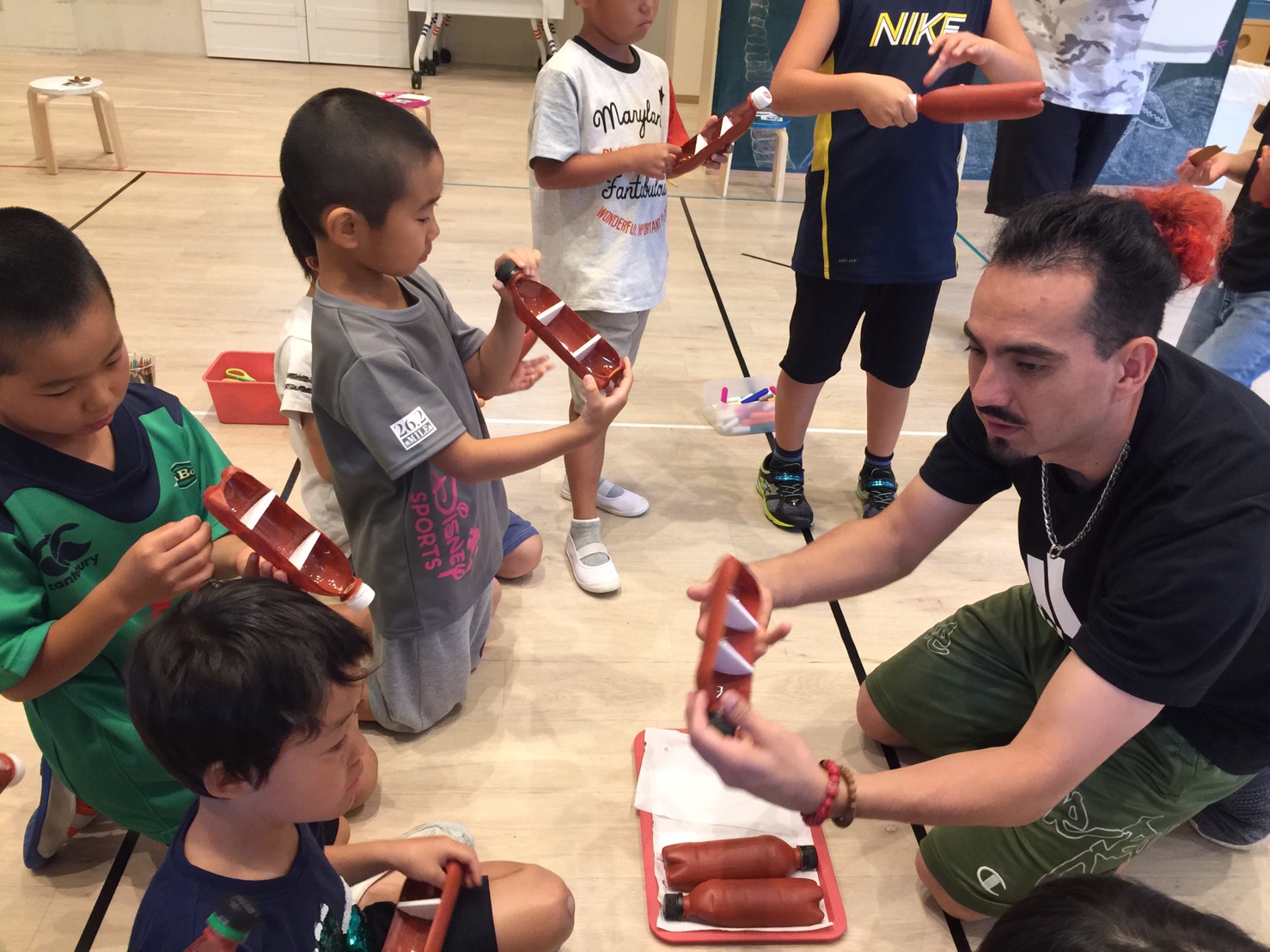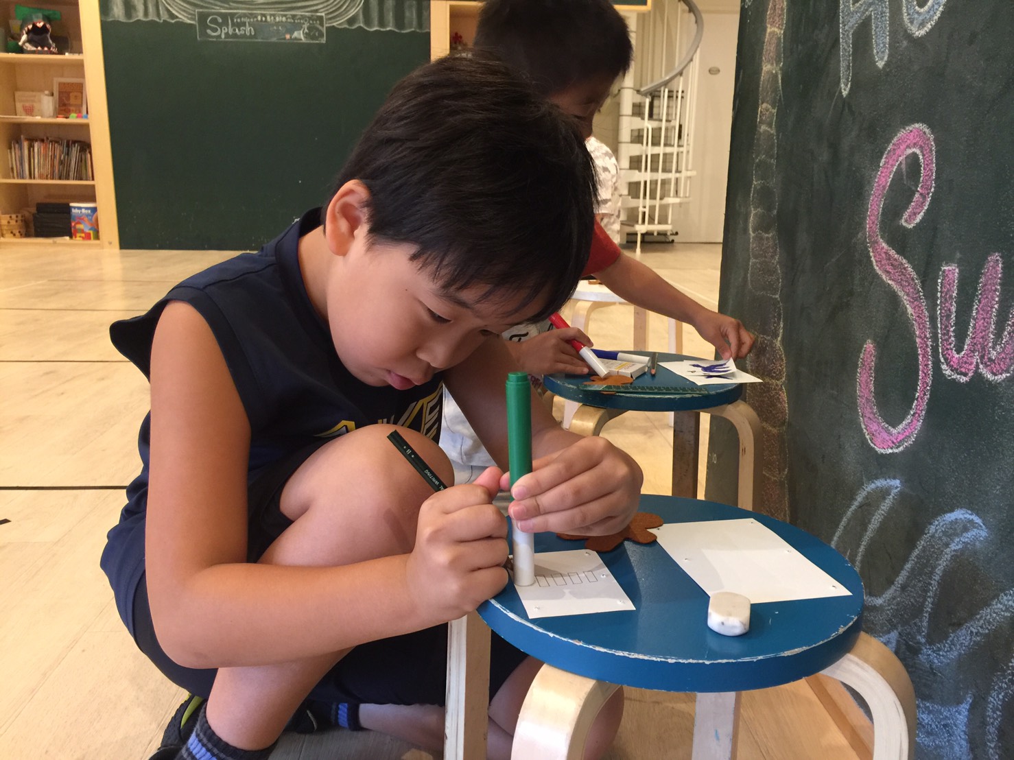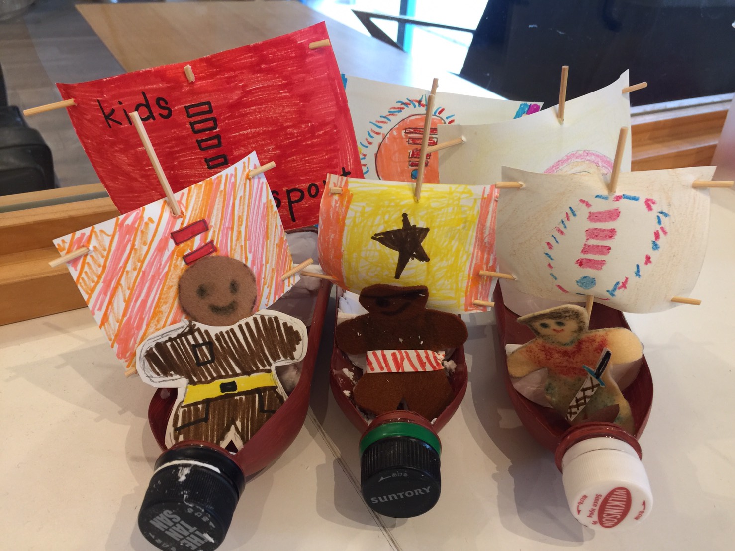 材料を確認したら”Sails”(マスト)に自分たちの好きな絵柄を書いて、マストに竹串を通して船にセットします。