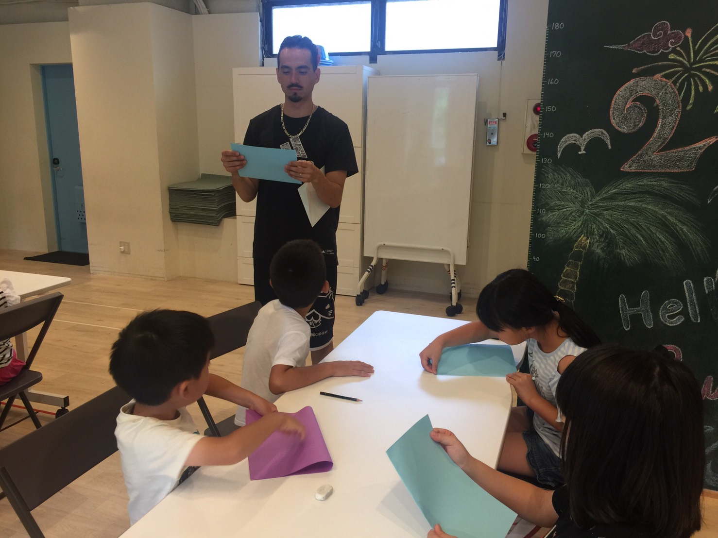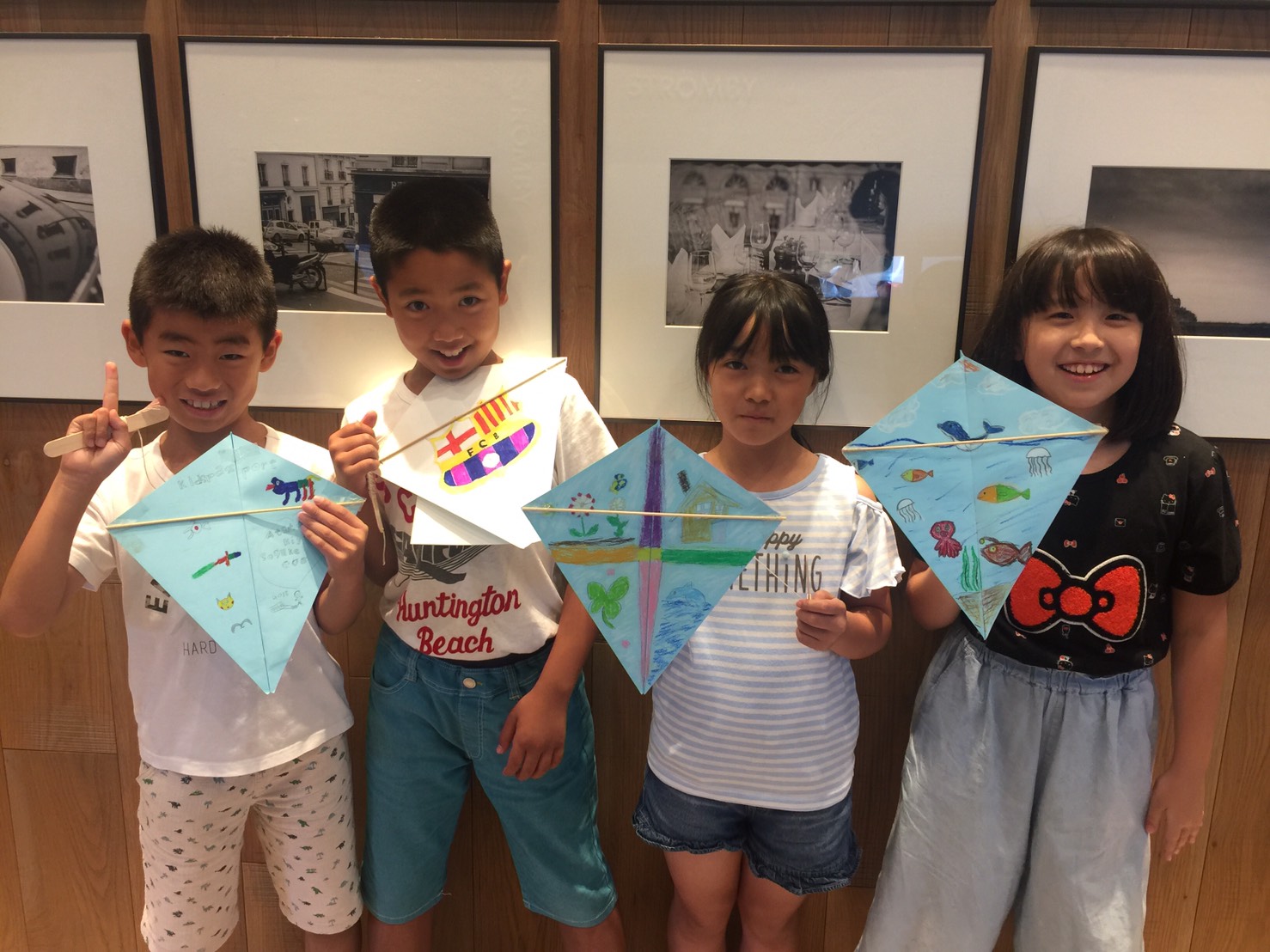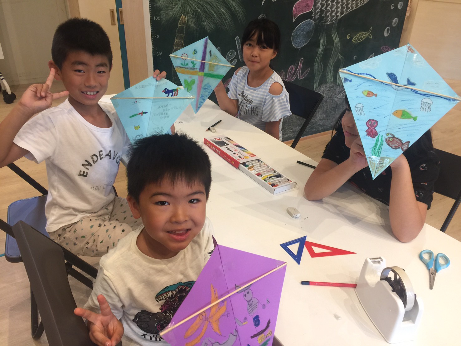 サマースクール3日目の今日は”Paper Kite”(凧)をつくりました。