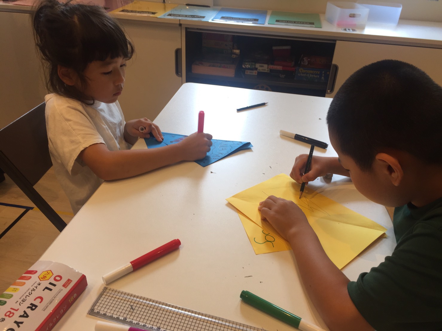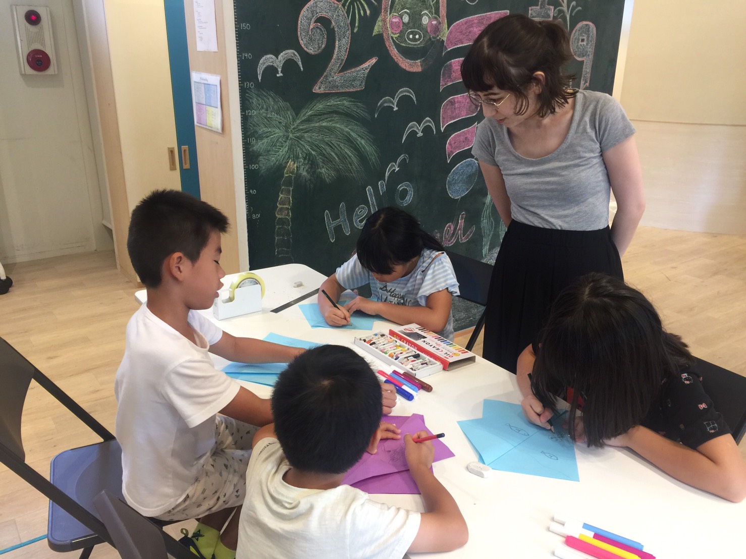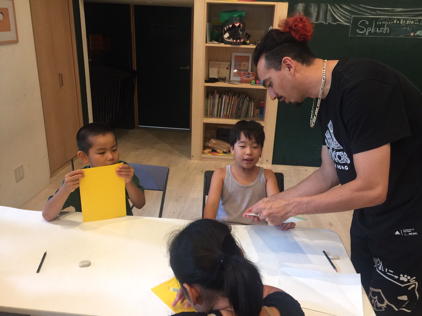 サマースクール3日目の今日は”Paper Kite”(凧)をつくりました。