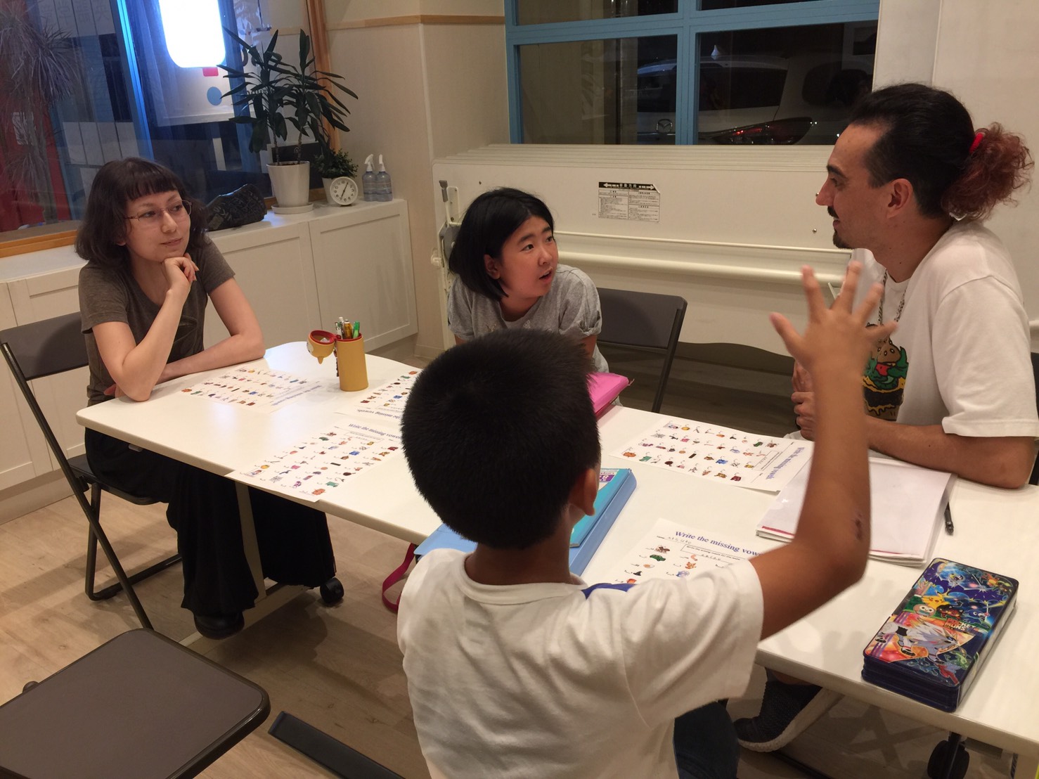 Dialogue”(劇の時間)は、4月から入って来た新1年生さんたちは”Watch and learn”(見て学ぶ)の時間でしたが、7月の中頃からはお兄さんお姉さんたちと一緒に劇に参加をしています。