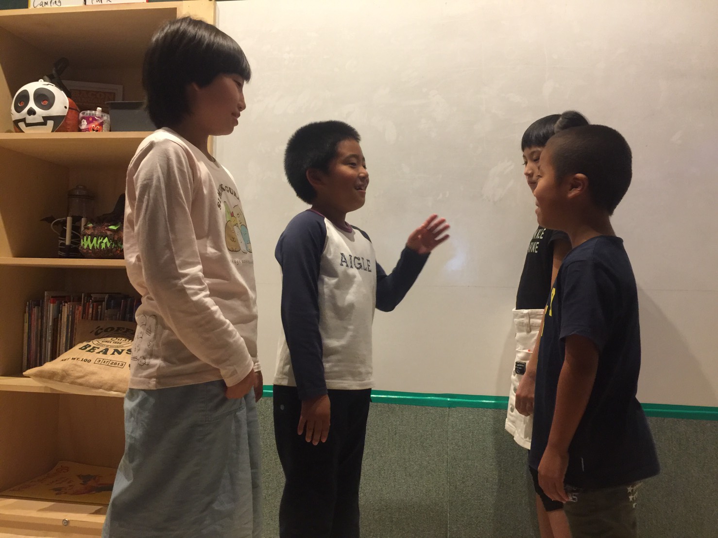 各チーム、それぞれのテーマにそった劇の内容やセリフを練って、練習をして、みんなの前で発表してくれています。