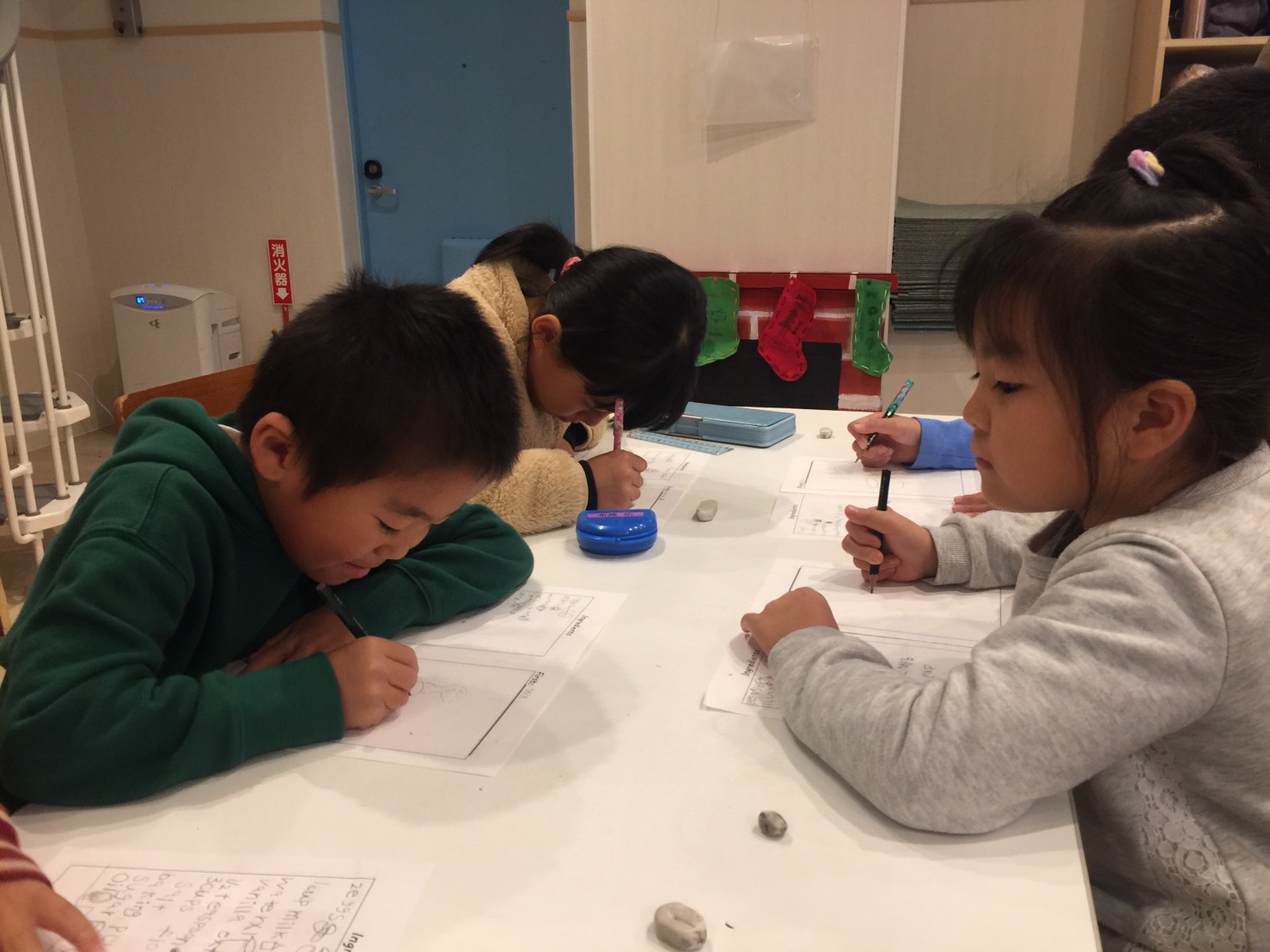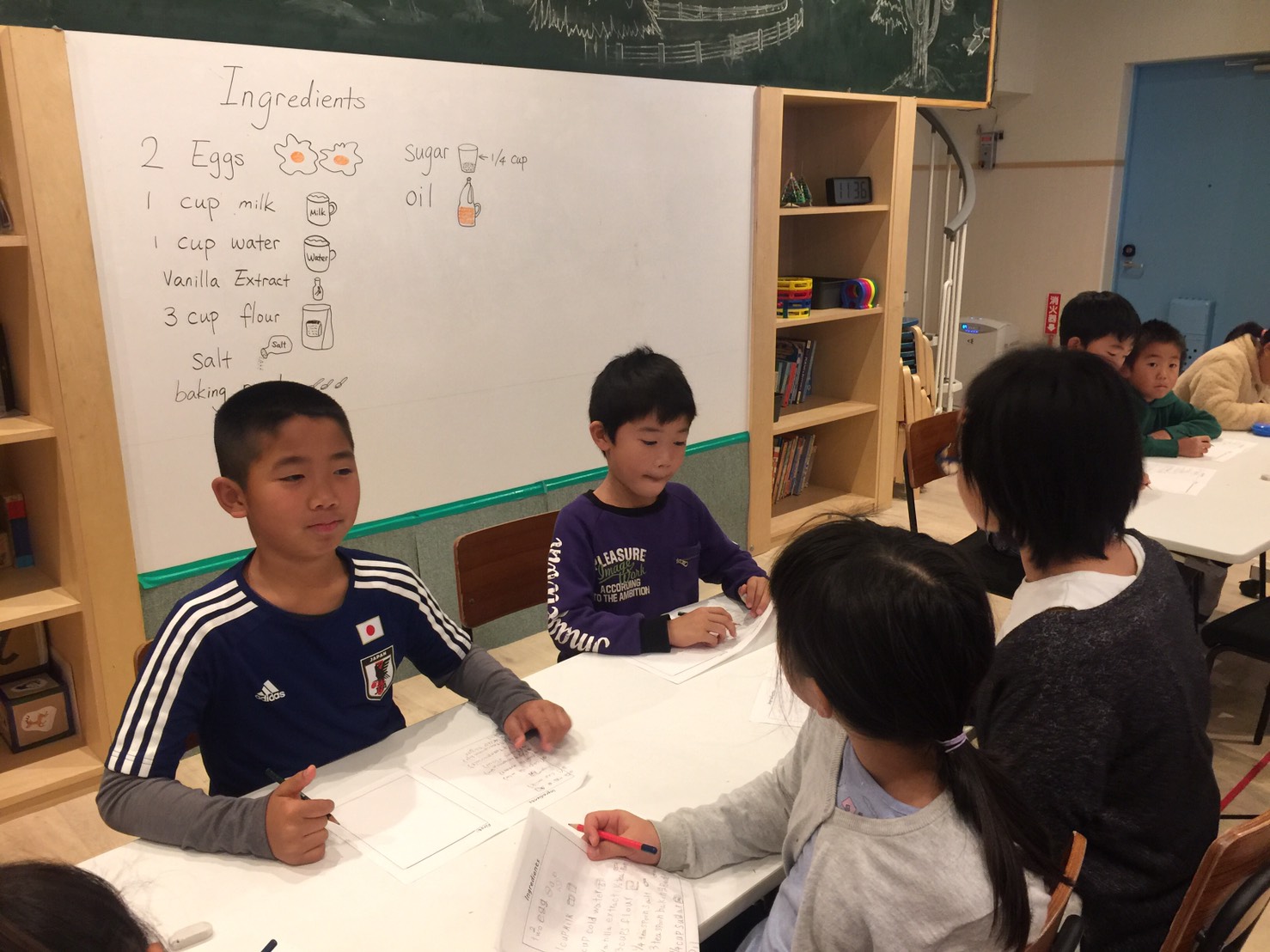 材料の名称と分量、手順を確認しながら自分たちのレシピブックにイラスト付きで書いていきました。