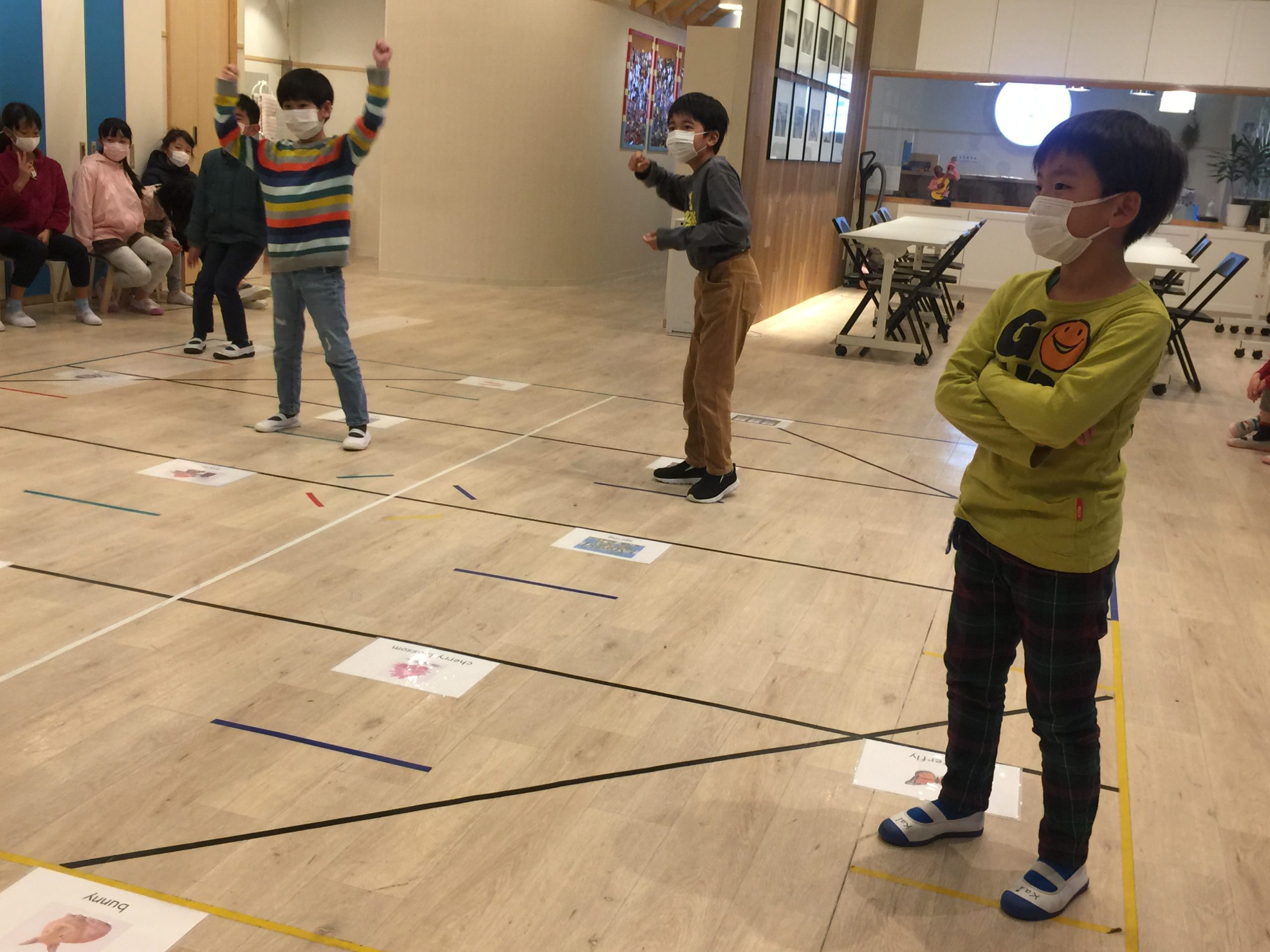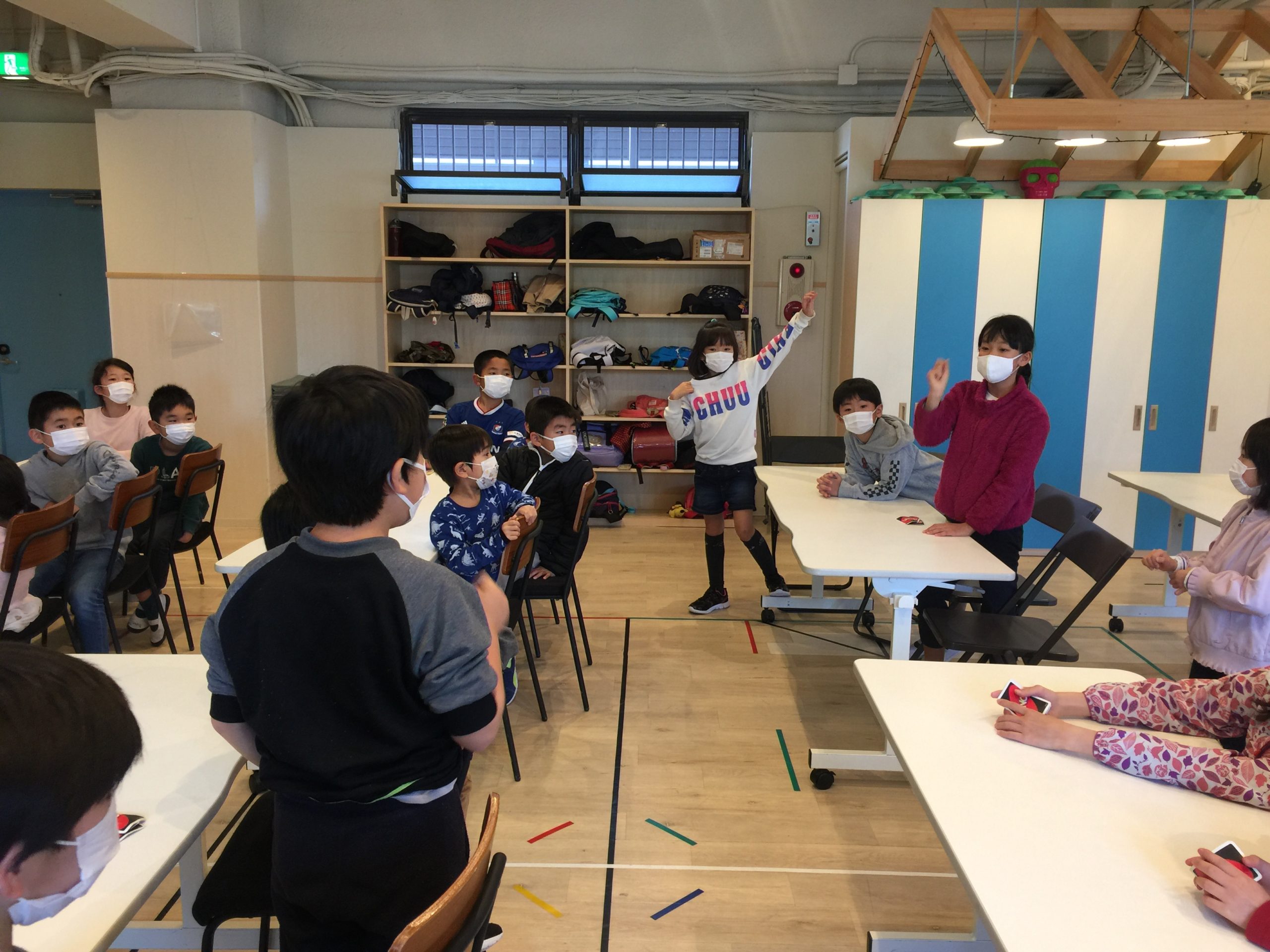 今月の”Target language”(覚えて欲しい言葉)を使ったジャンケンゲームをしています