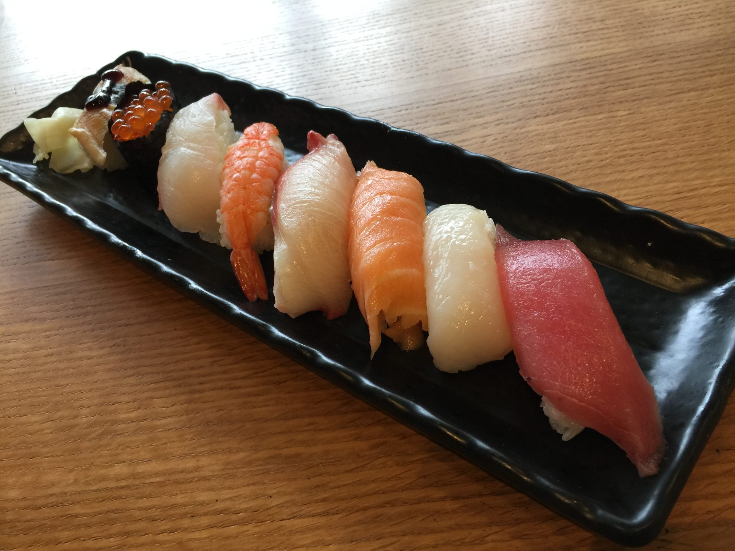 “Spicy sauce”(スパイシーソース)や“Wasabi”(わさび)、”Garlic”(ガリ)などもお好みでもらってお寿司を満喫しました。