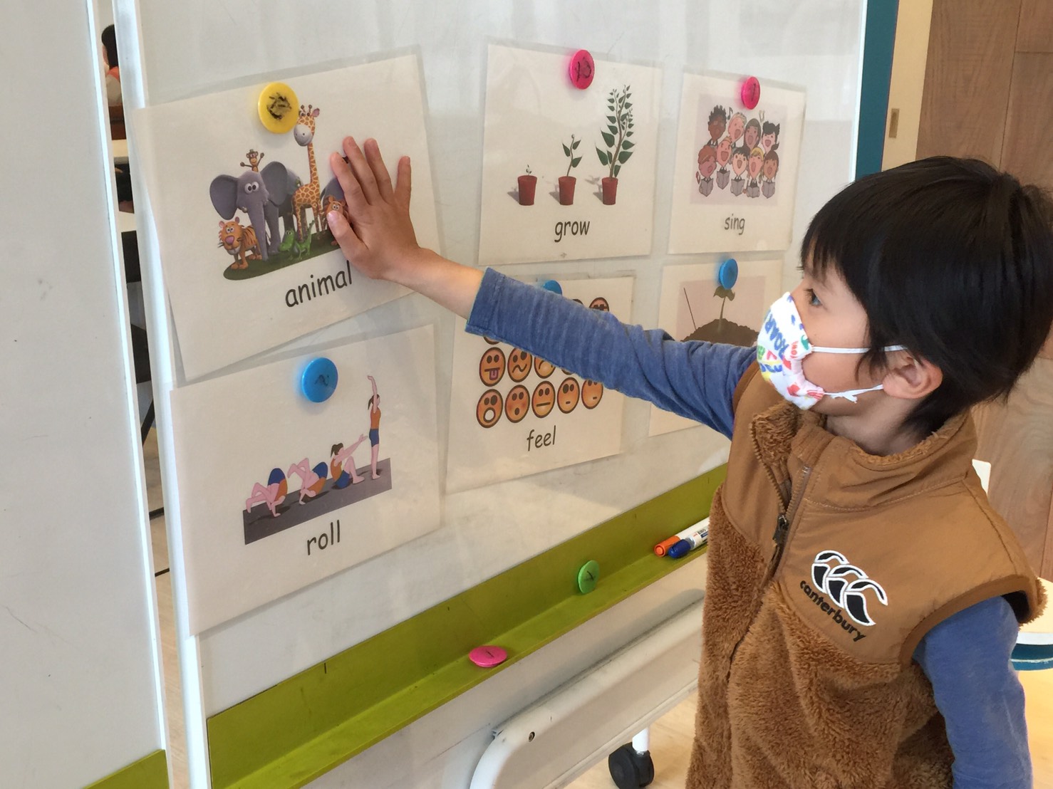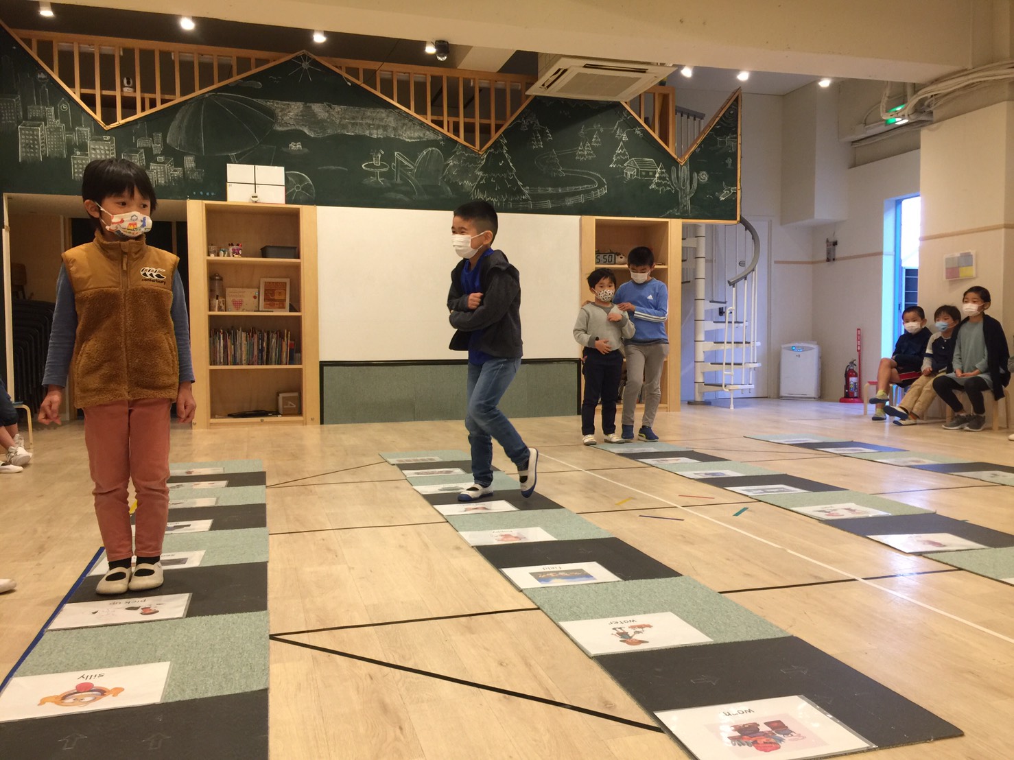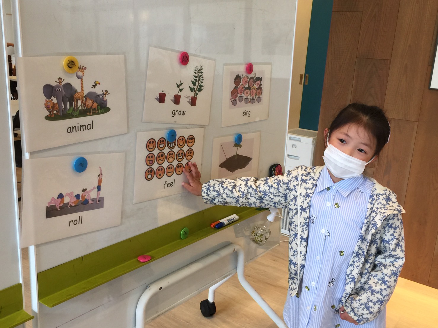 まずは一緒に練習をした後に前に出て”Pat the Cat Grows a Fish”とタイトルだけ言えたらオーケーだからね。