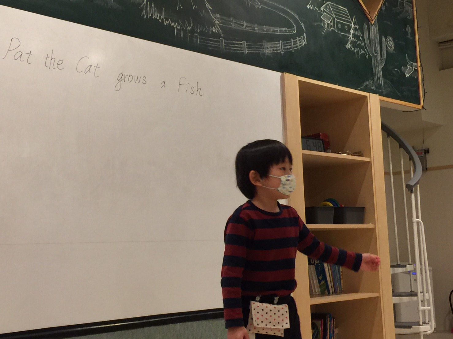 キャスパー先生と一緒に、単語や簡単なセンテンスのQ &Aを行ったり、