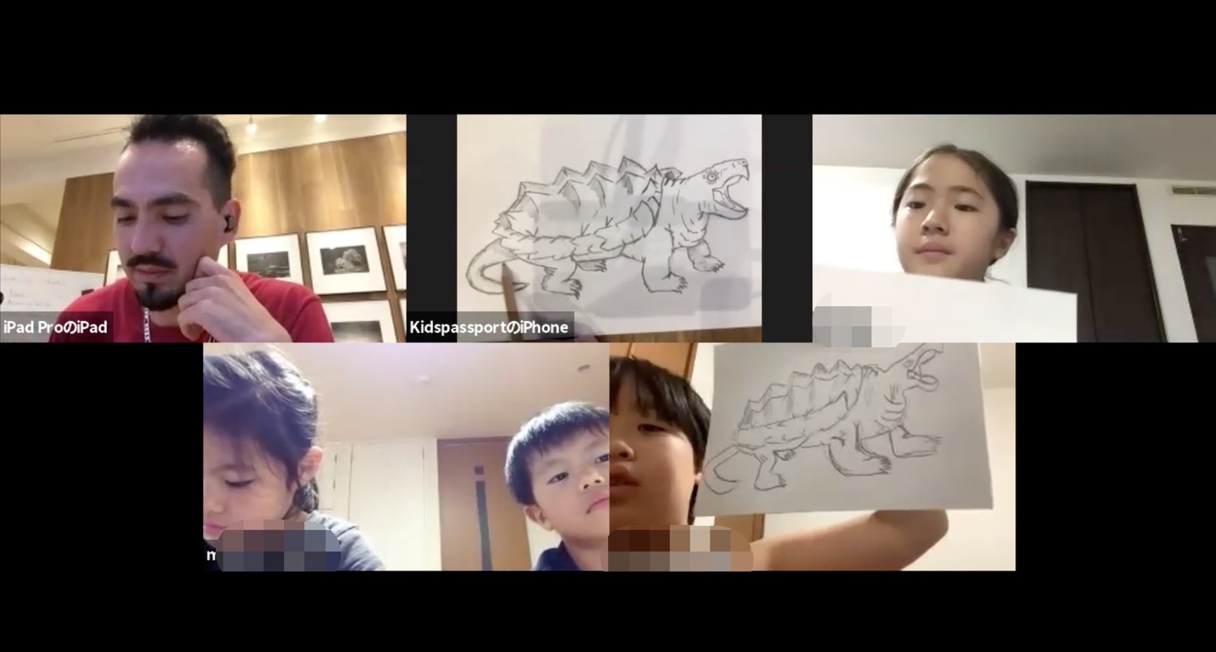 先生:“We are going to draw a turtle.”(カメの絵を描くよ)