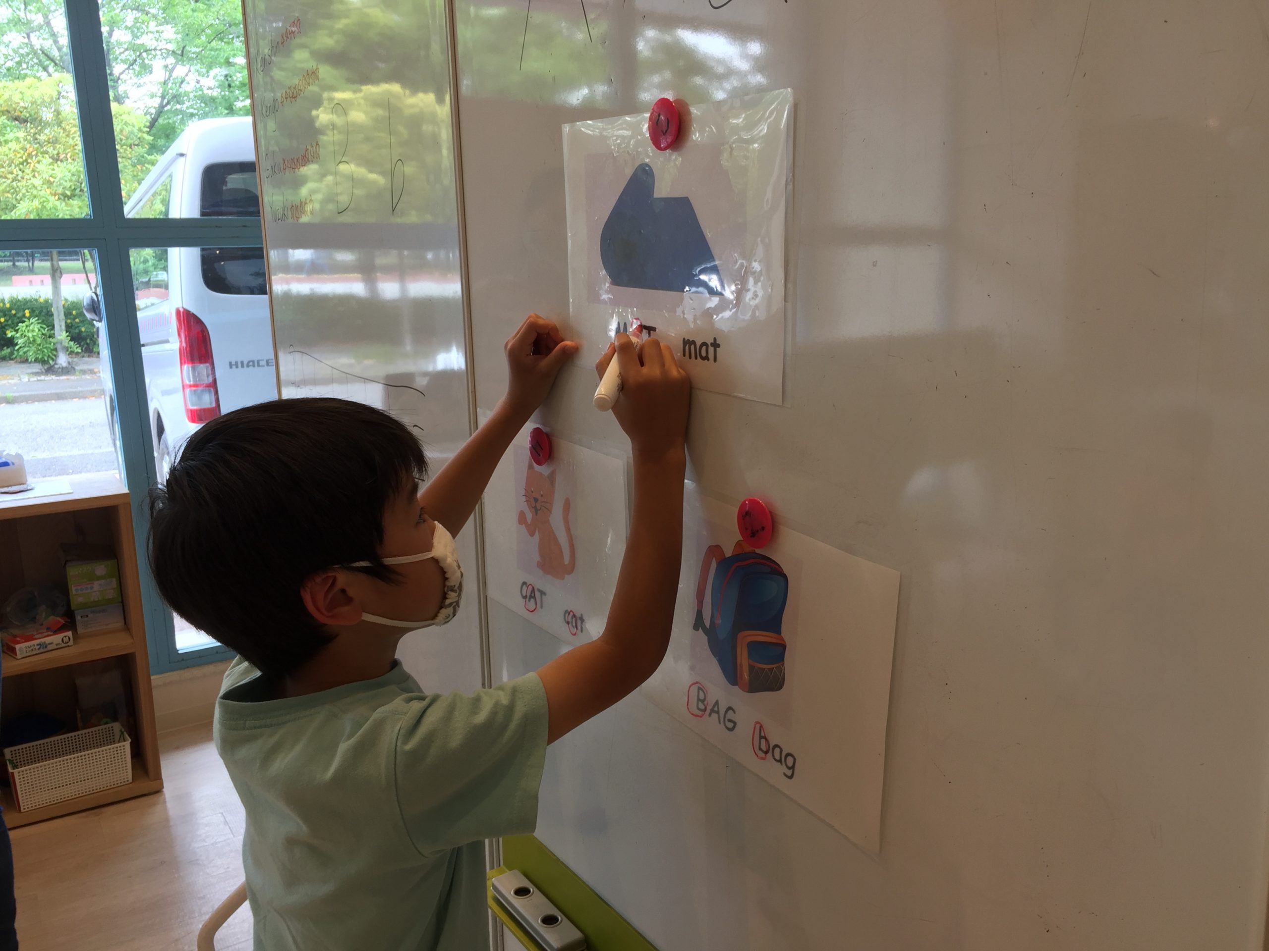 アルファベットやフォニックスの練習をしながら、今月の”Target language”(覚えて欲しい言葉)、数字の数え方などの基礎レッスンをやりました。