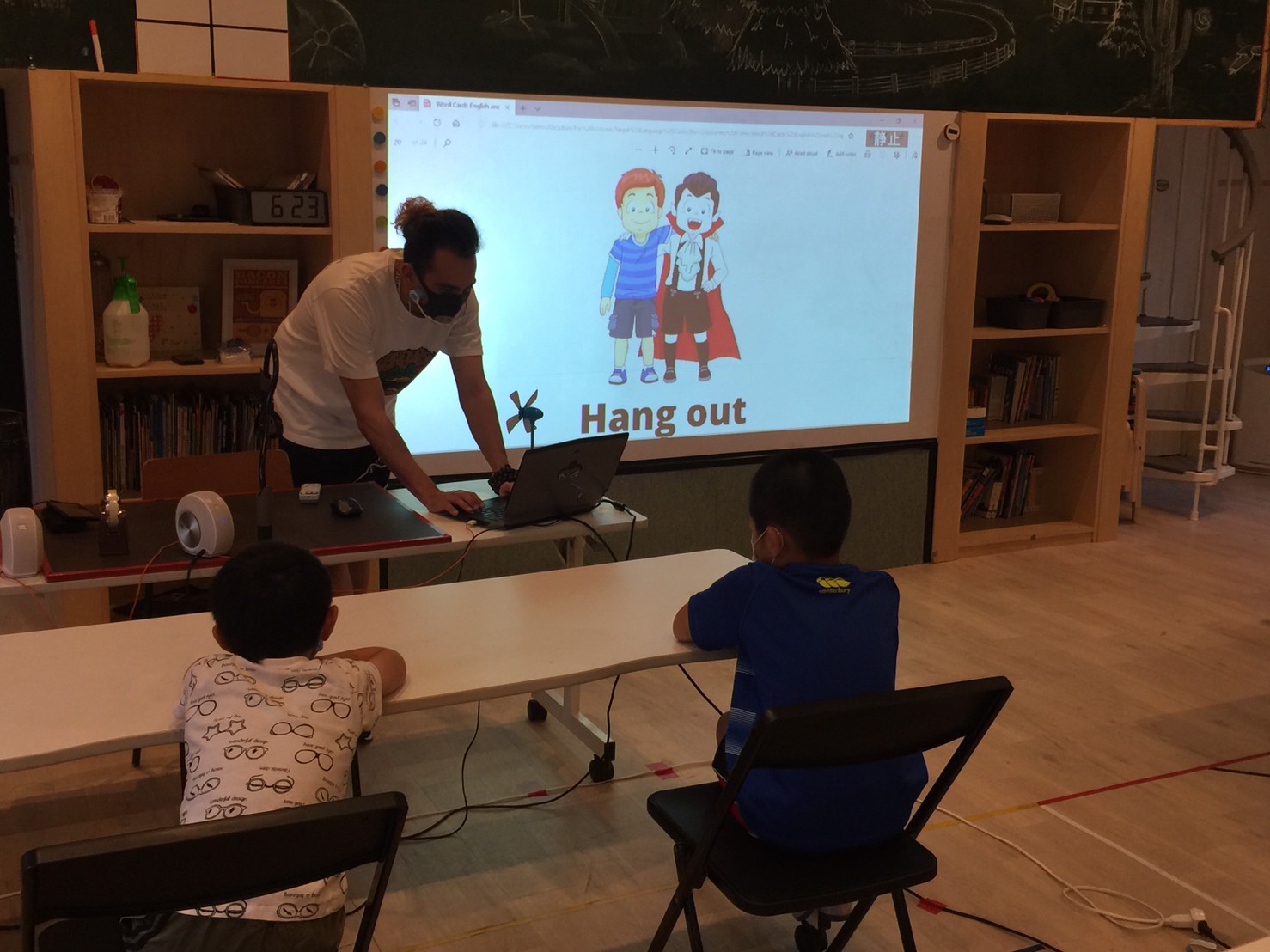 単語の練習の時間は“Try, listen and repeat”の1、2、3ステップで練習をしています。
