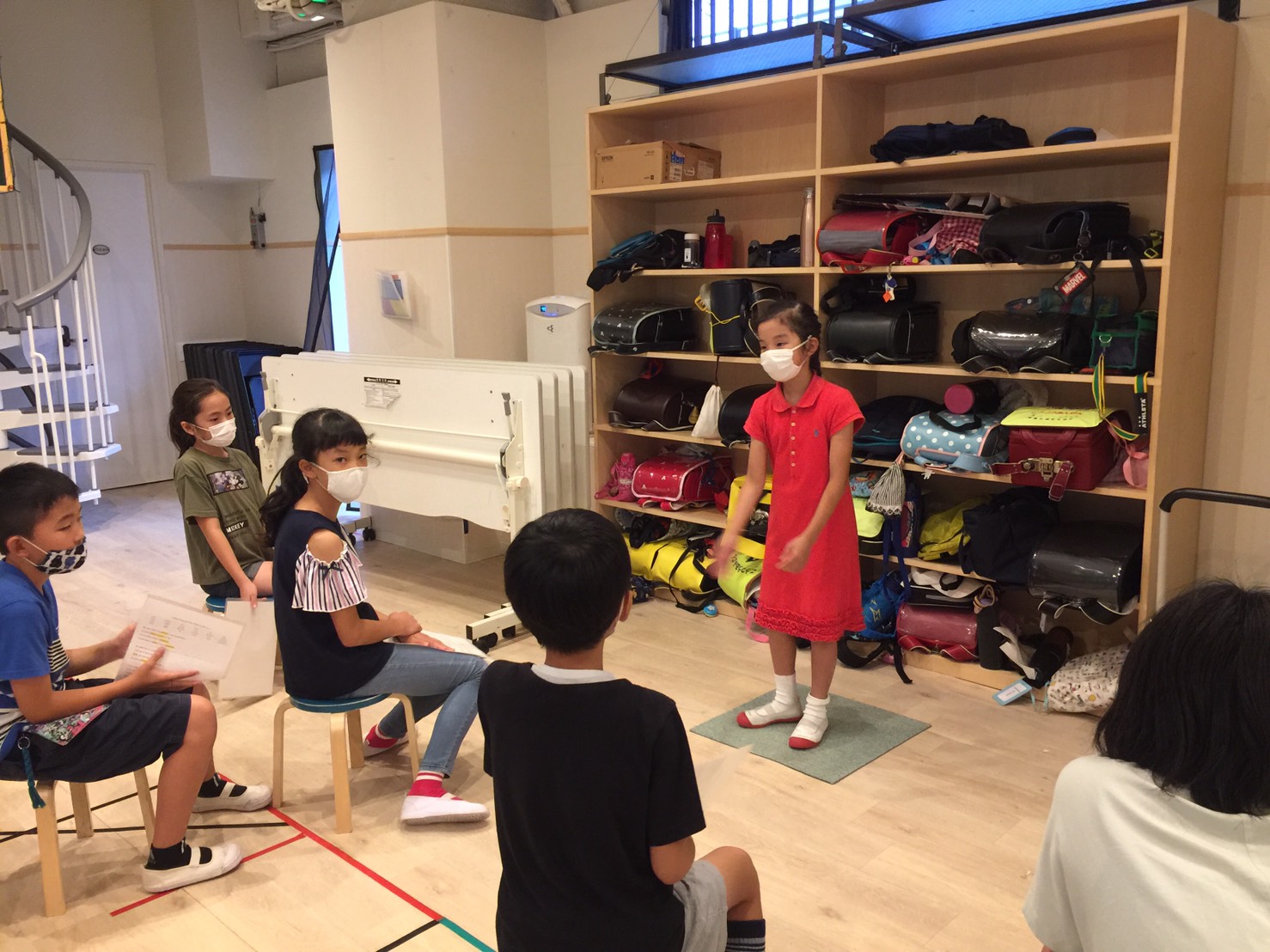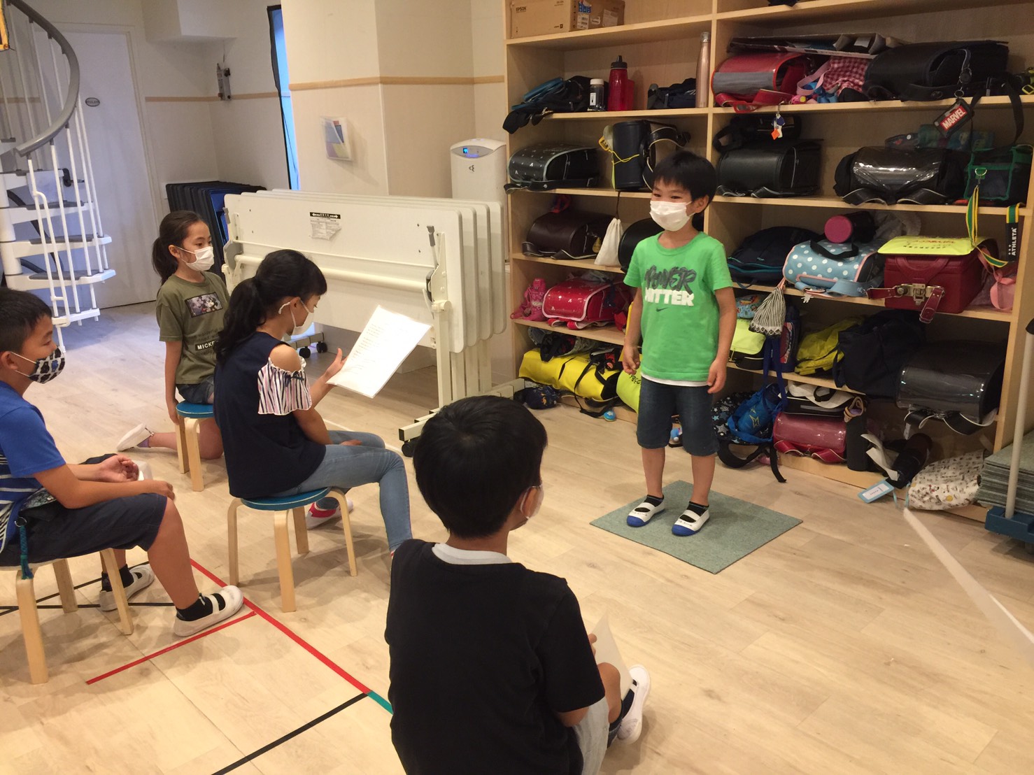 (ストーリーをみんなの前で発表する時間)に、