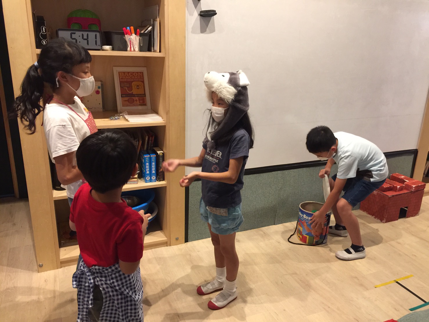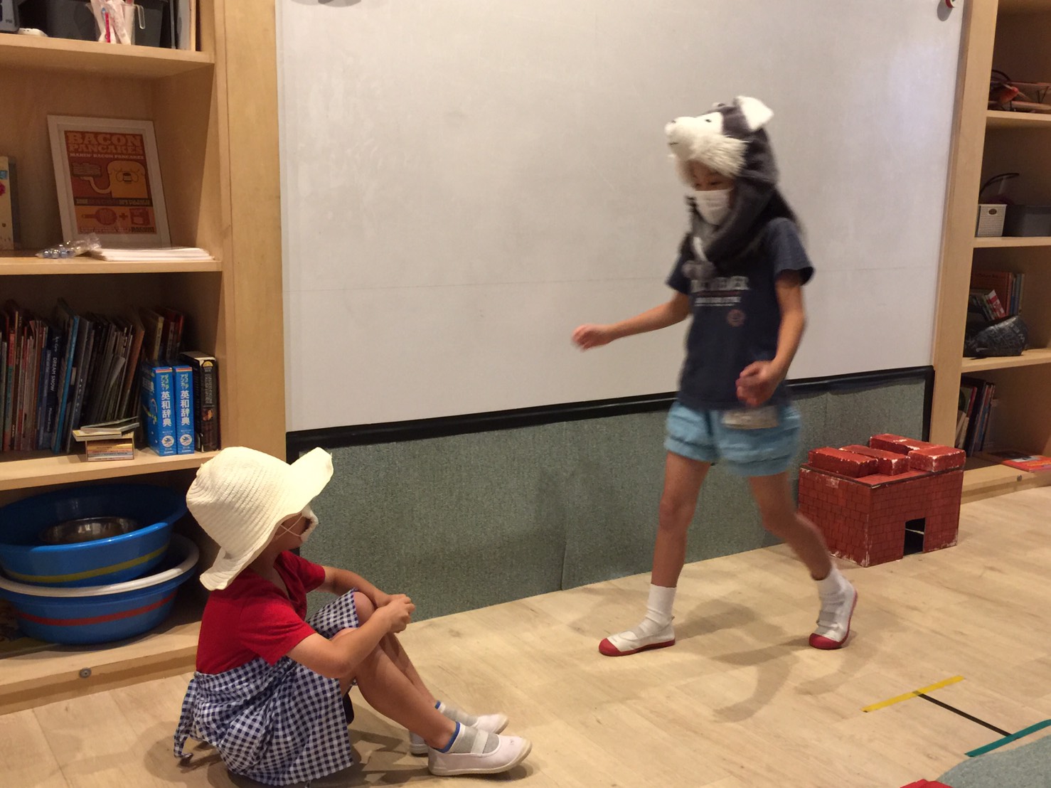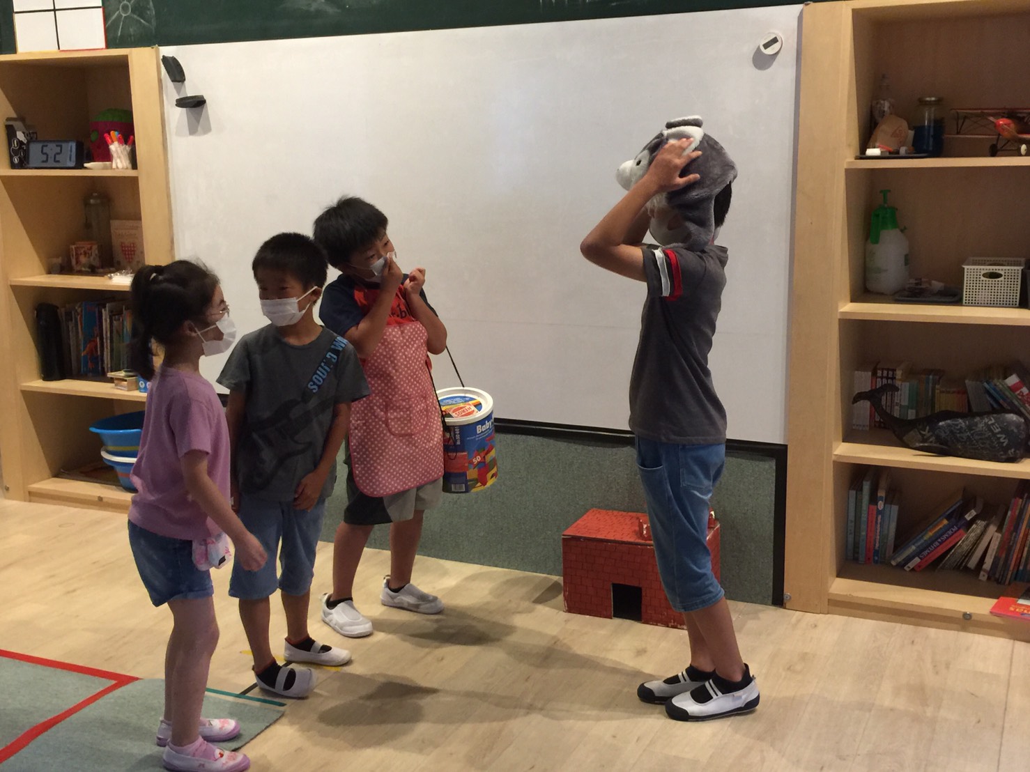 キーワードの部分に線を引いてくれているストーリーの紙も、先生たちが用意してくれているので”Key word paper please.”(キーワードの紙をちょうだい)と言ってもらって、おうちに持ち帰って練習してきてね!