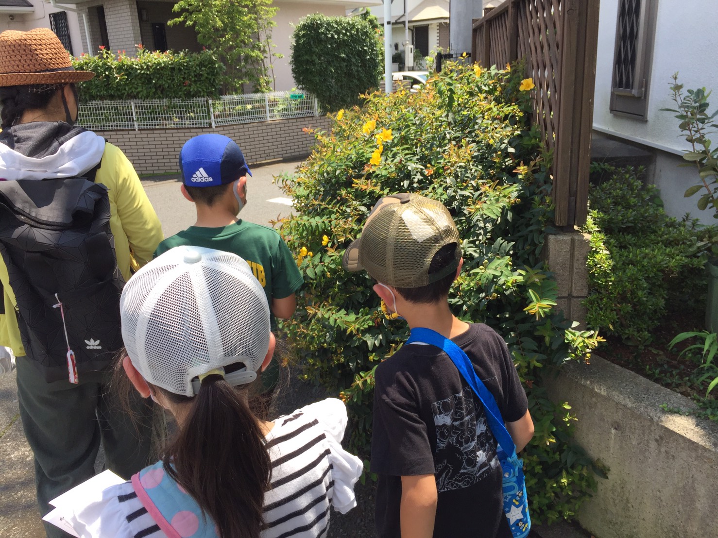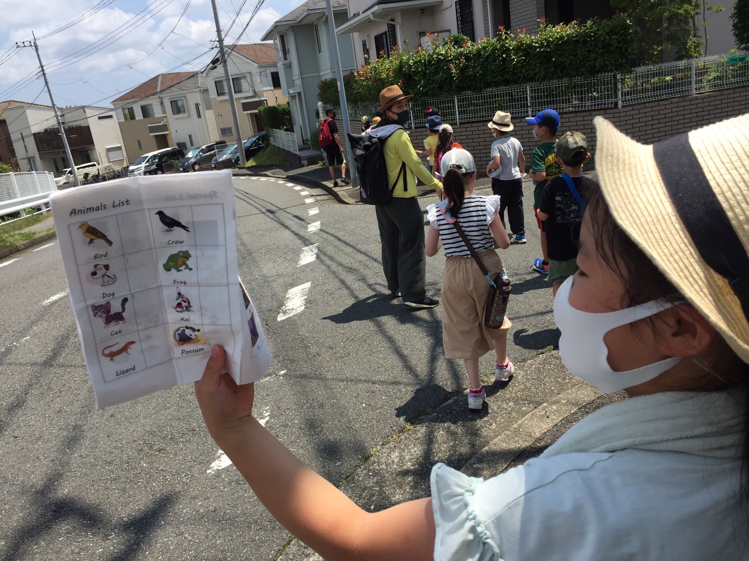 発見できるかな?のアイテムが書いてある”Exploration book”(探検ブック)を持って、みんなで近所を探検しにでかけました。
