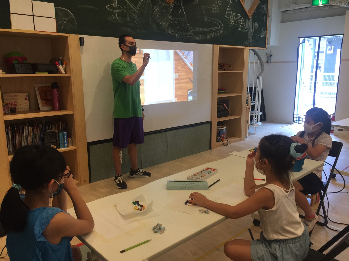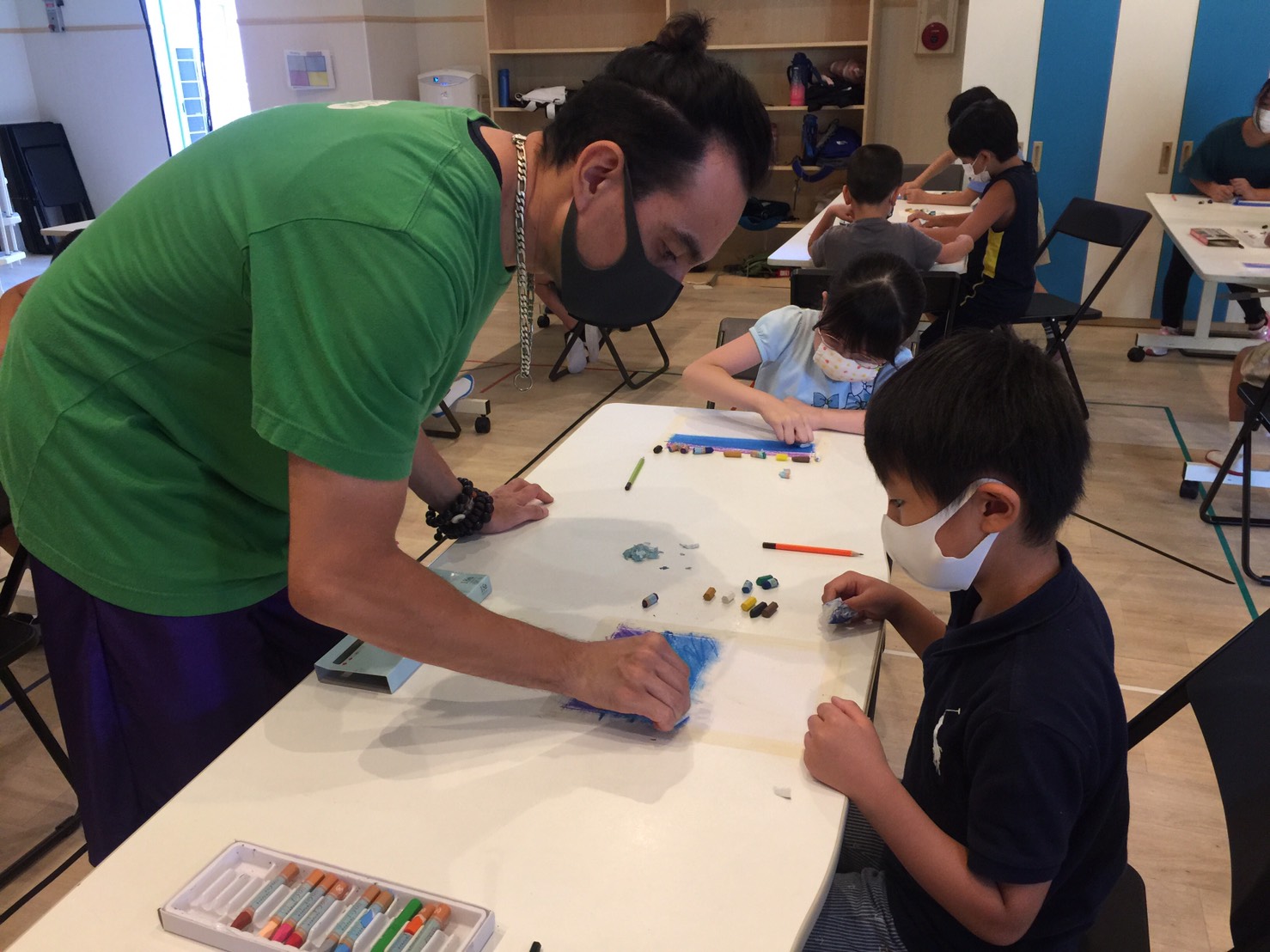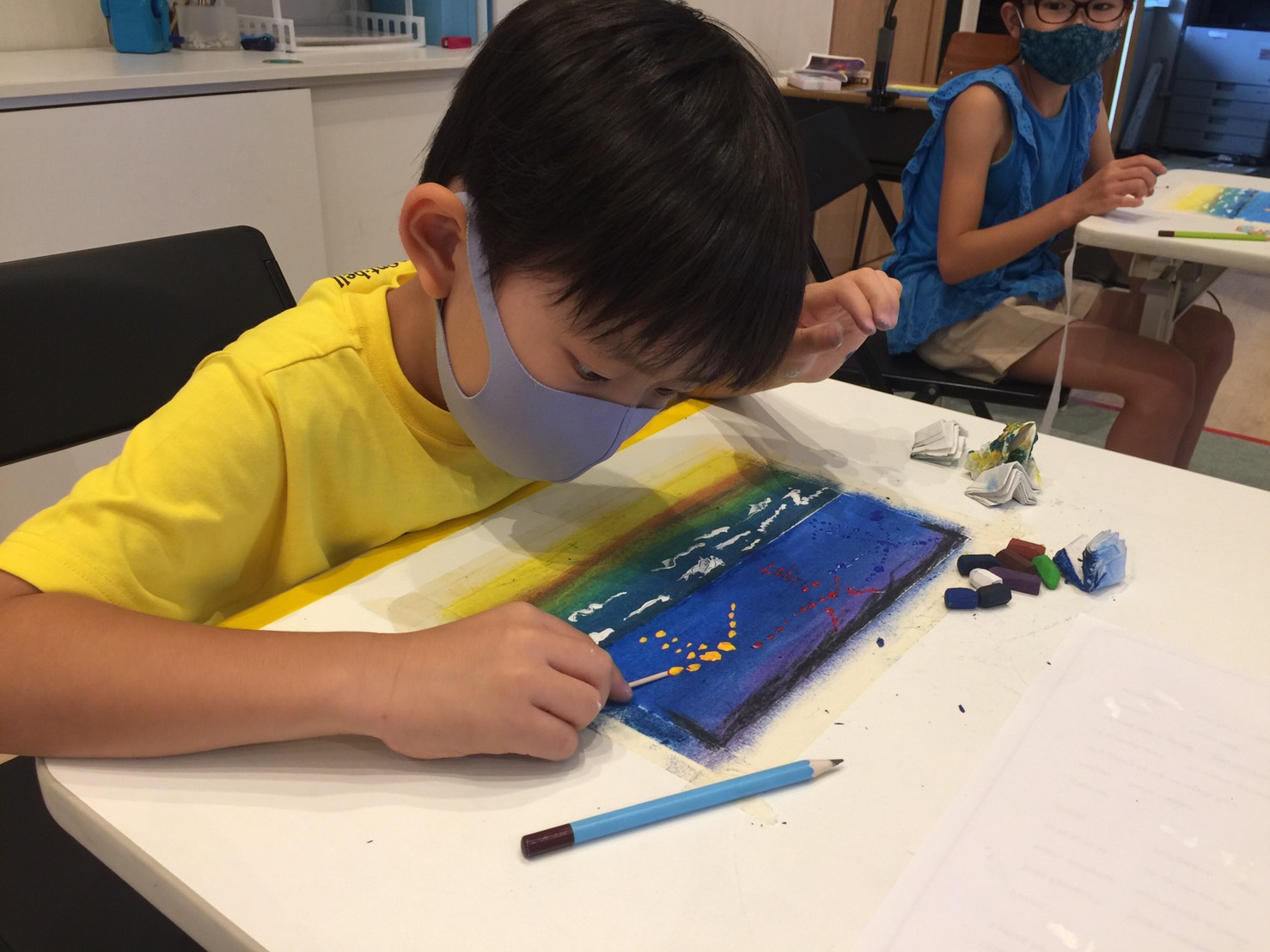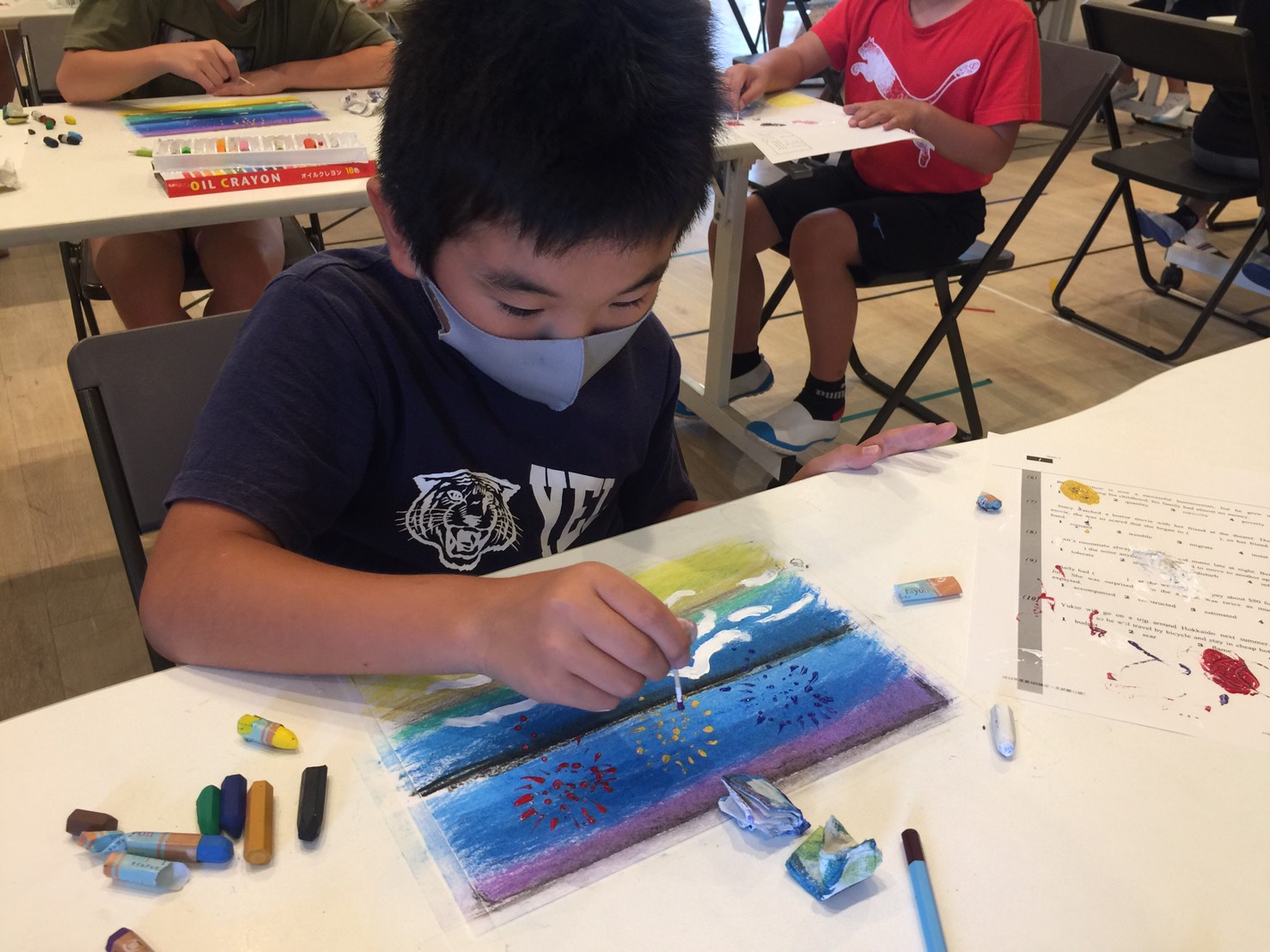 サマースクール3日目は”Summer Color Art”(夏を描こう)をやりました