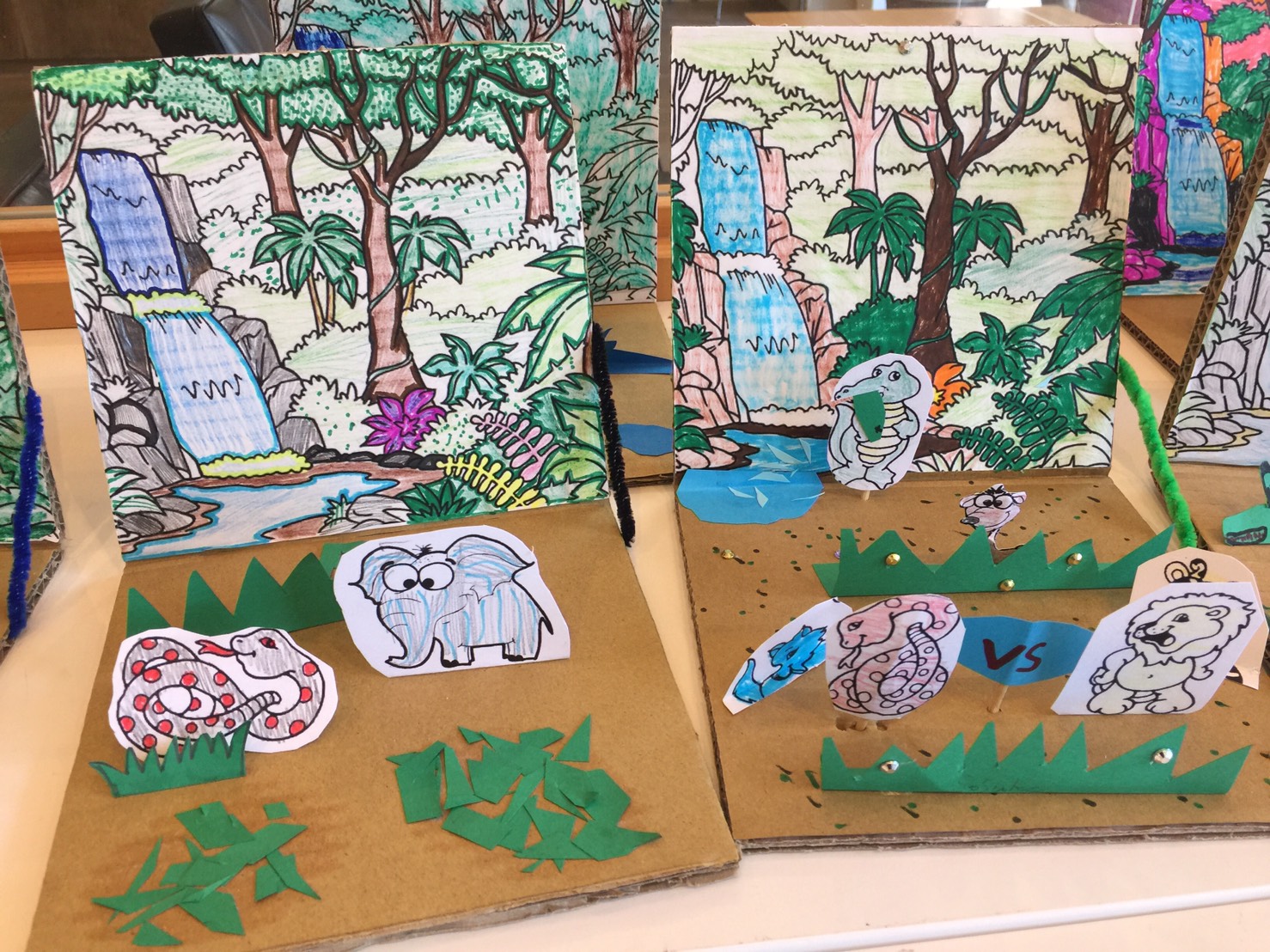 サマースクール4日目は”Jungle Diorama”(飛びだすジャングル)を作りました