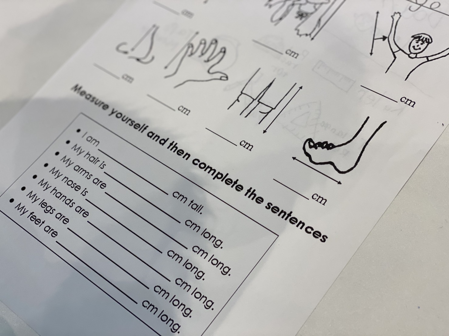 “My ____ is/are ____ cm long.”(私の○○は○○センチです)