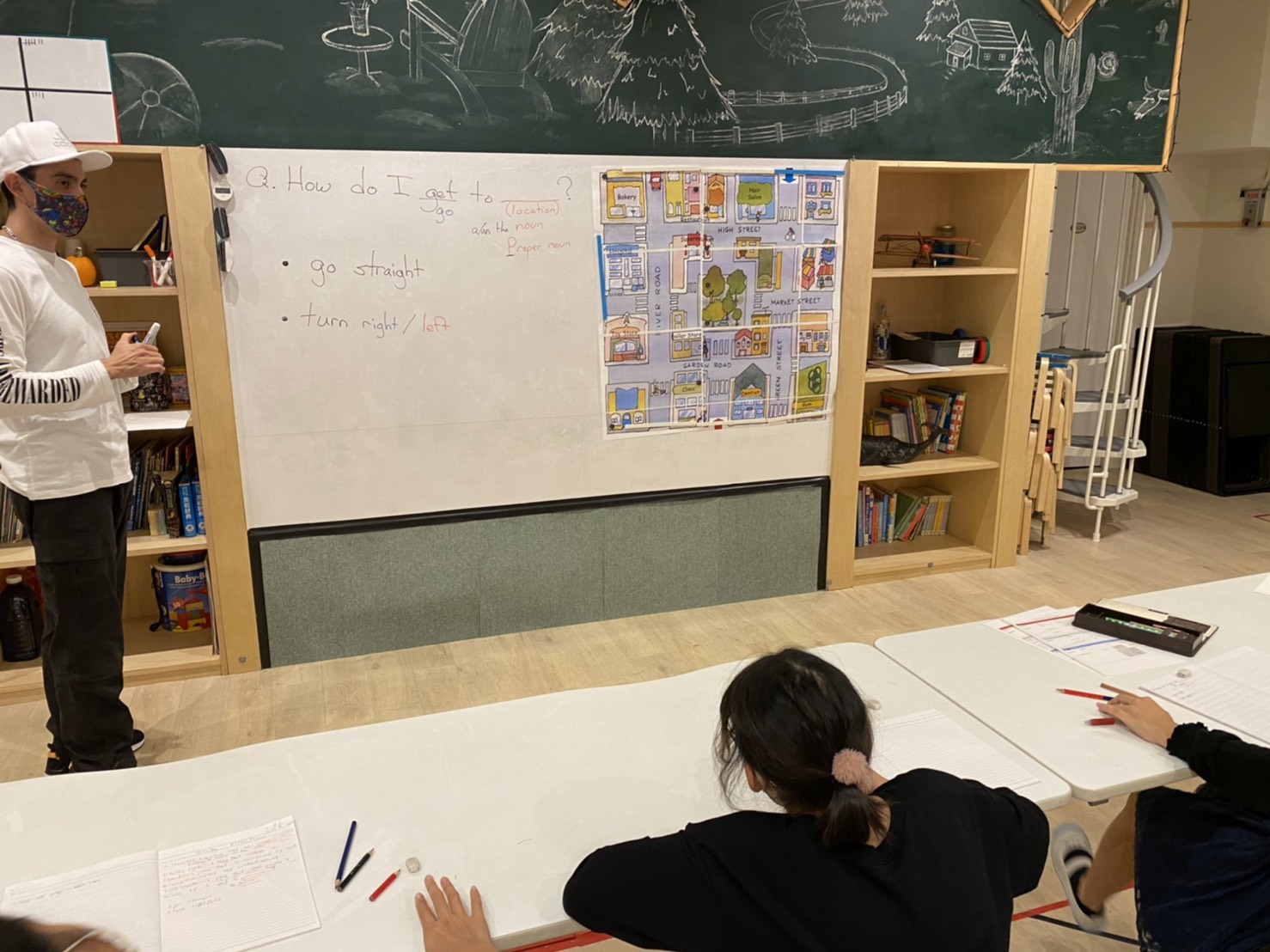 今日の様子 どうやったら目的地に辿り着ける?ナイトコース中級 2020.10.09 この記事のタイトルとURLをコピーする どうやら町の地図でいろいろなお話をしています。 美容室から診療所にはどうやっていけばいい? どこの道をとおる? どこでどっちに曲がる? 右折?左折? まっすぐ進む。 言葉・センテンスを覚えるのも大事ですが、今どちらを向いているのか?左はどっち?あれっ、右? と地図の中で方向感覚がおかしくなってしまう生徒さんもいて、 少し混乱していました。 外国人に道を尋ねられたら、英語で答えられるといいね! ジェームズ・メディナ Tweet Share Hatena Pocket RSS feedly Pin it ハロウィングッズをポイントで交換しよう! 前の記事 ポイントゲットだぜ! 次の記事