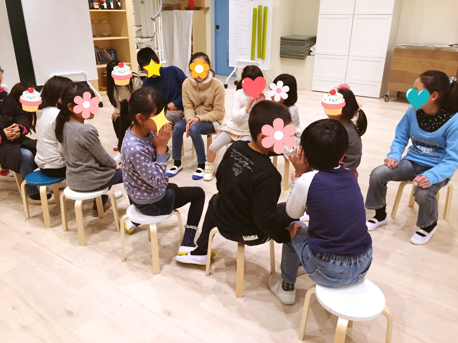 オヤツの後のサークルタイムで、少し長めの新しいセンテンス(Q&A)の練習