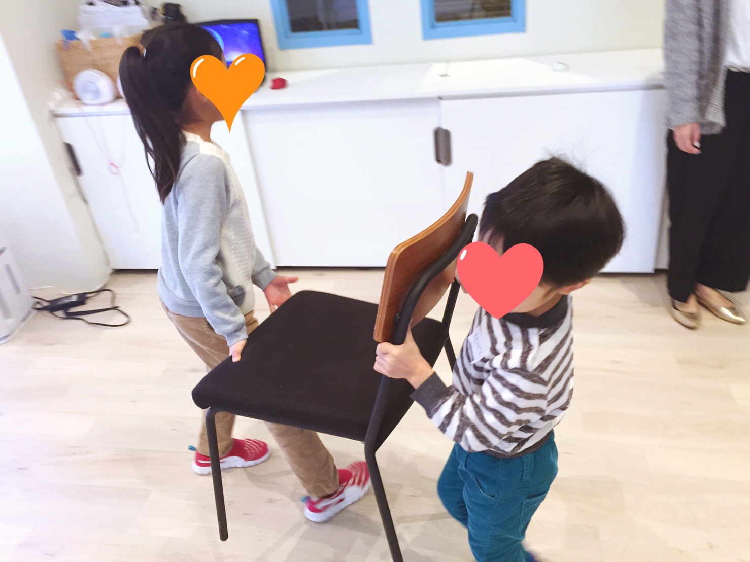みんなでテーブルやデスクの片付けを行います。体験生さんも一生懸命手伝ってくれていました。
