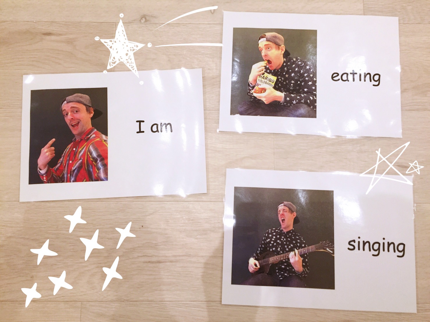 先生:”What am I doing right now?”(今、先生は何してる?)生徒さん:”You eat gummy.”(グミを食べる)