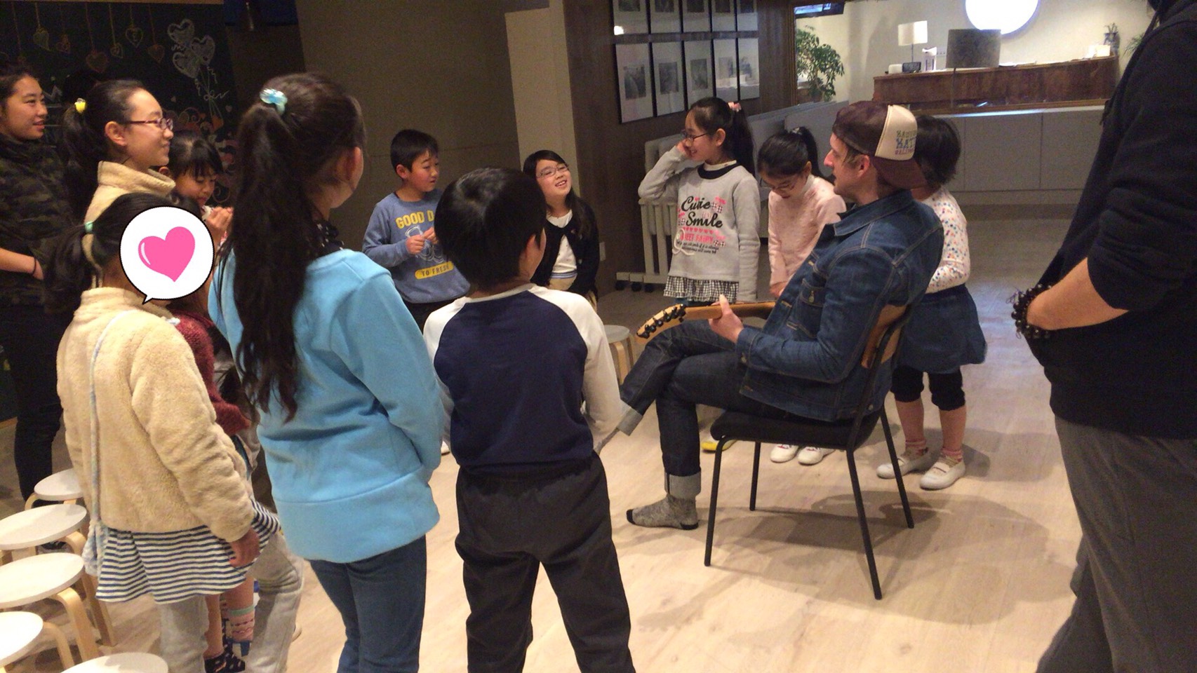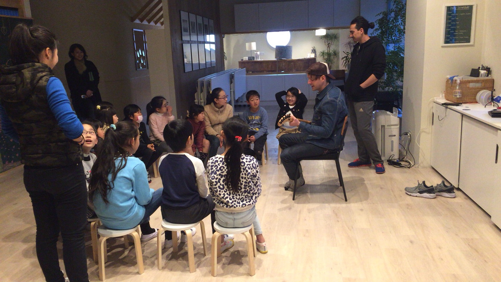 みんなでおやつを食べたあとは、昨日に引き続きキッズパスポートのテーマソングの練習です。徐々にみんな覚えてきて大きな声で歌えるようになってきました!