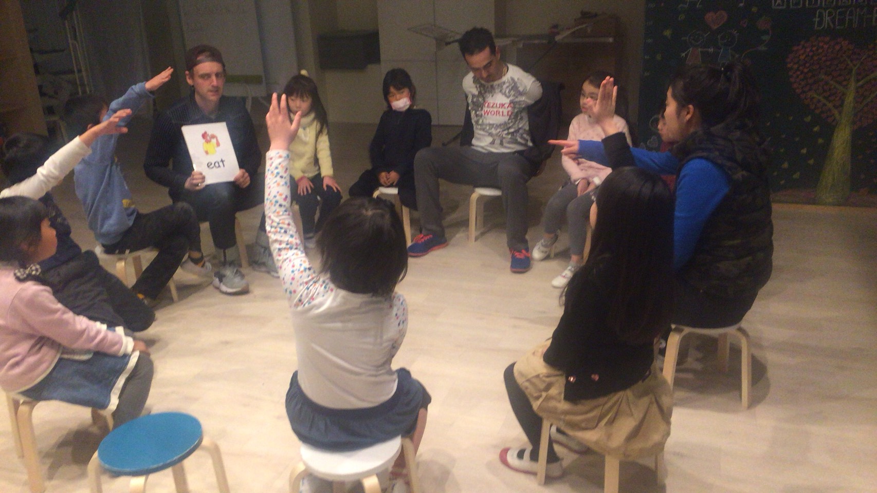 マイク先生のラップが入ったり、慣れてきた生徒さんは抑揚をつけたり、合いの手をいれたりで、 それに合わせて声も大きくなってきましたね!