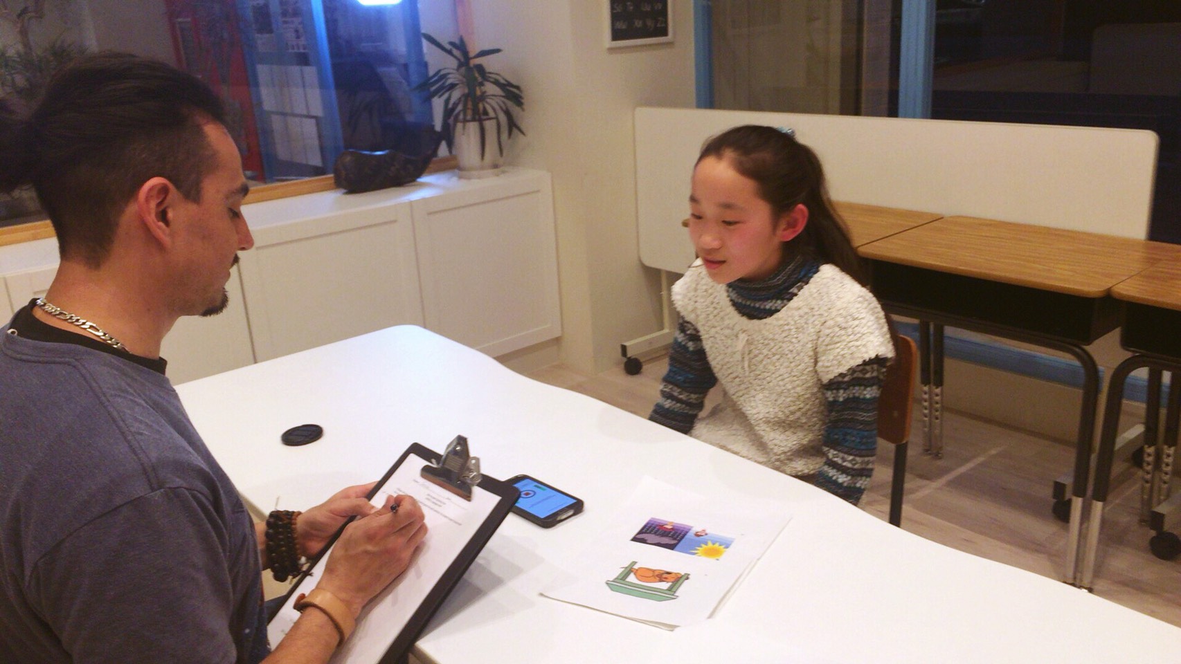 “It doesn’t have to be a long sentence and if you don’t know how to form a sentence, you can just say, it is a school.”(長いセンテンスじゃなくても大丈夫だよ。もし、センテンスを作るのが難しかったら「これは学校です」だけでも良いよ)