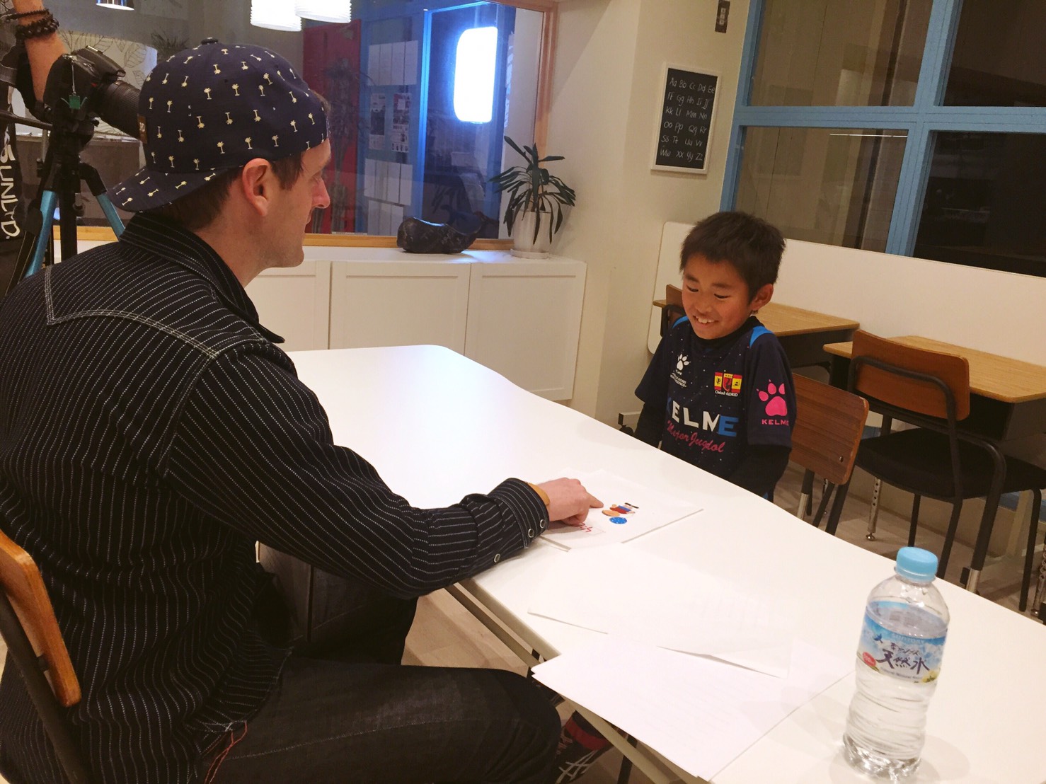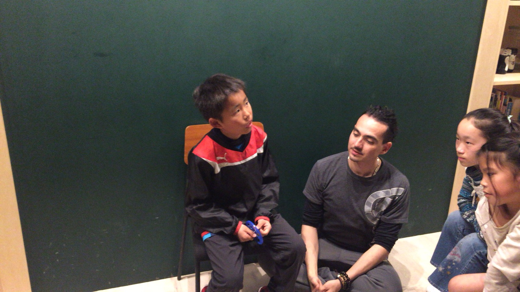 Kくん:”You spin it like this.”(こうやって回すんだよ)