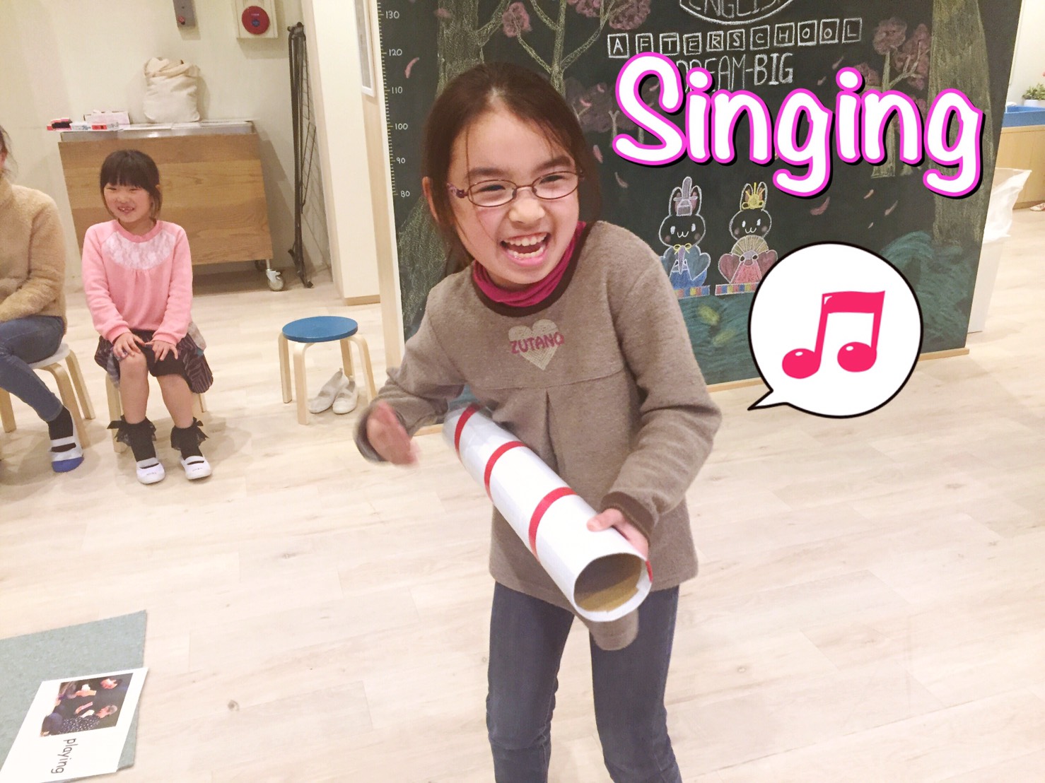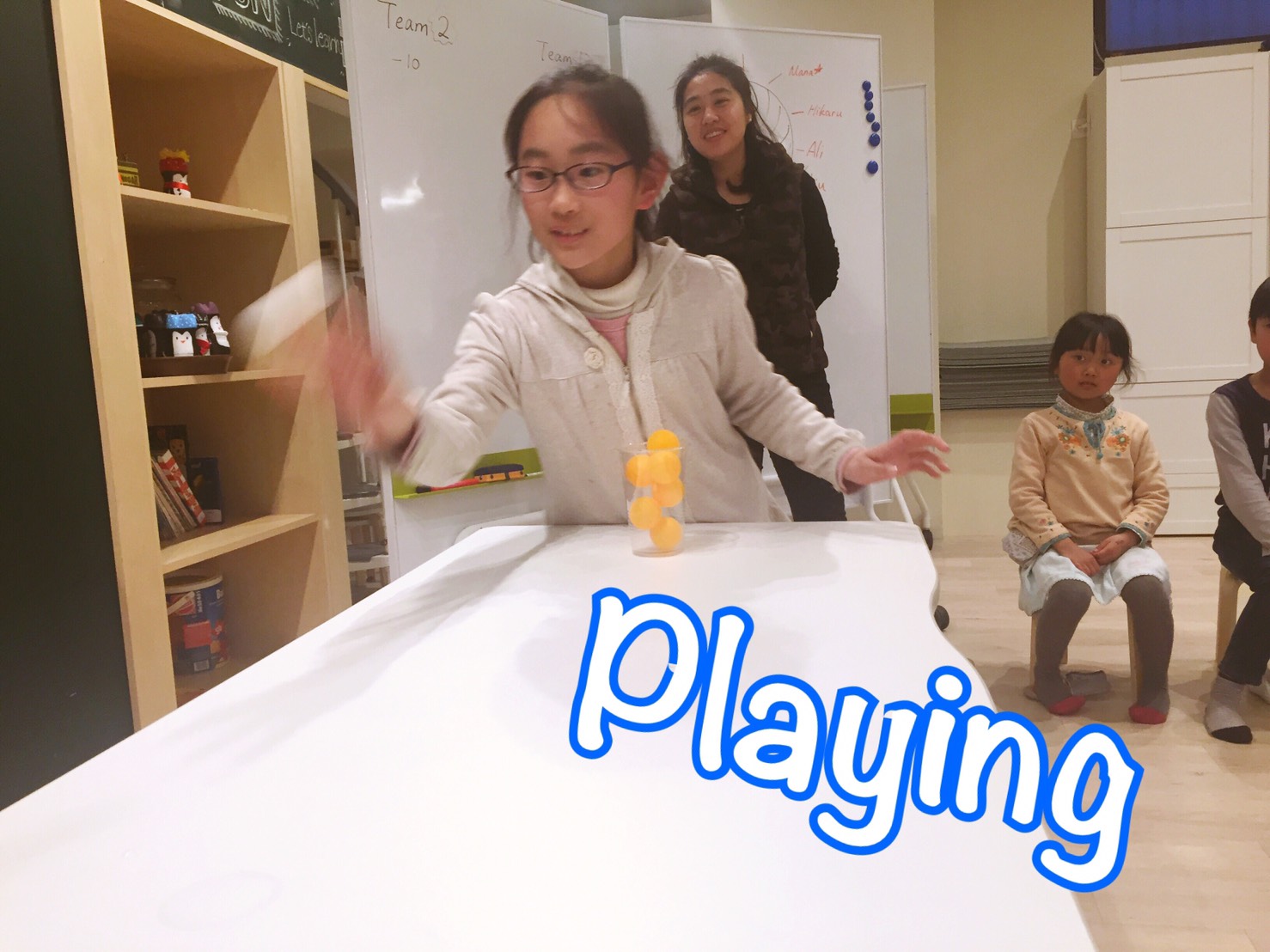 先生:”So, we are going to show you a special thing for you.”(だから、今日は先生達がスペシャルな物を見せてあげるね)