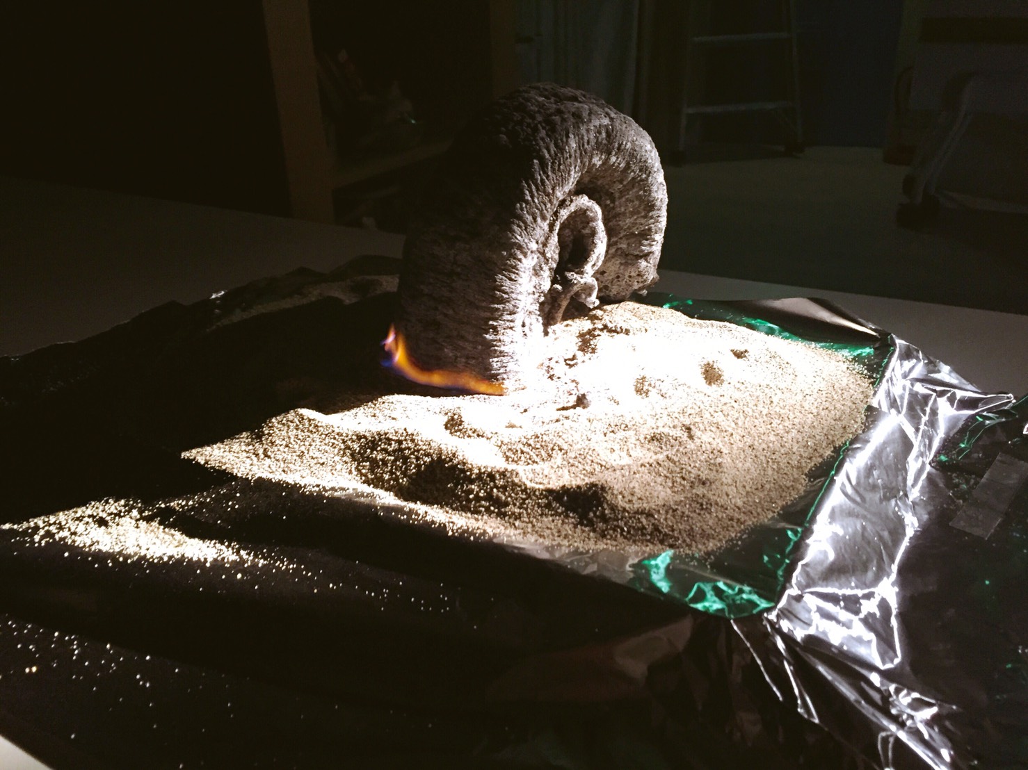 時間が経つと、なんと砂糖と重曹の固まりがどんどん大きく膨らんで行きました!!