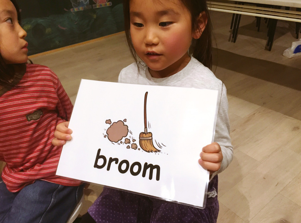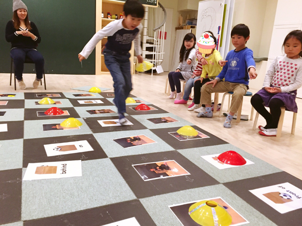 午後は前置詞レッスンで陣取りゲームや外遊び、“Show and tell”や“Circle time”でした。