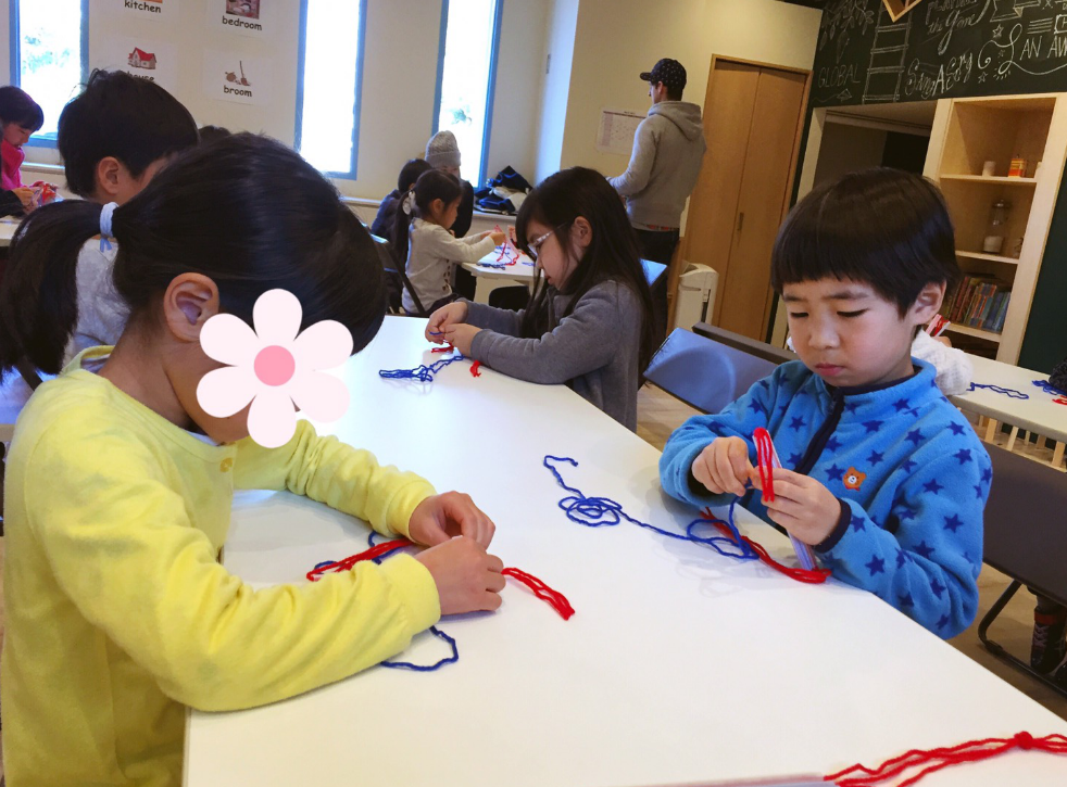 先生:“We are going to make a bracelet today.”(今日はブレスレットを作るよ)