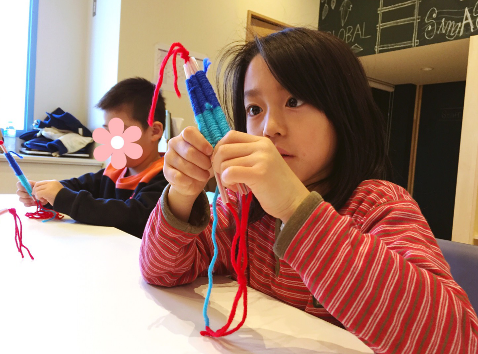 今日の午前イベントは”Straw Weaving”(ストローで編み物)でした