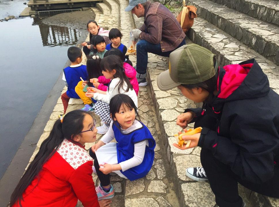 。 今日は天気が良かったので近くの川に餌やりにしにいきました。ペアになってルールや先生が話す英語を教えあいながら、徐々に初めての生徒さんも緊張がとれてきました。