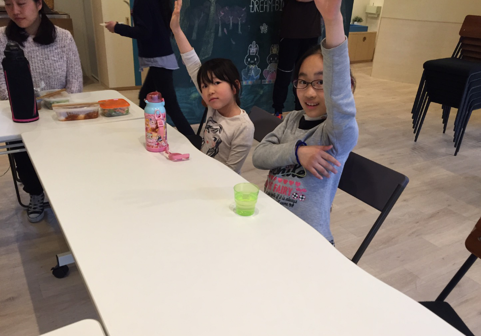 既存の生徒さんと新しく入った生徒さんでペアを組みました。先生:”S, you are in charge of this girl.”(Sちゃん、君はこの子の担当ね)
