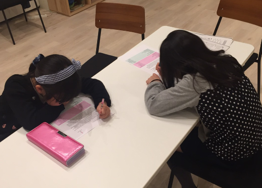 単に意味を覚えるだけでなく、リーディング教材を使い、そこにでてくる単語を使ってセンテンスを作ってみたり、先生達と会話をして、会話の中から単語の意味や使い方を教えてもらいました。
